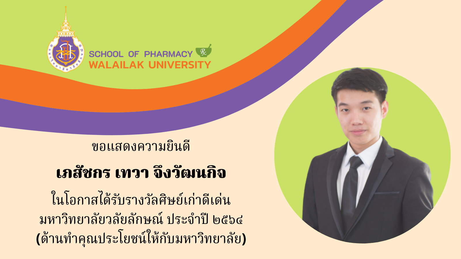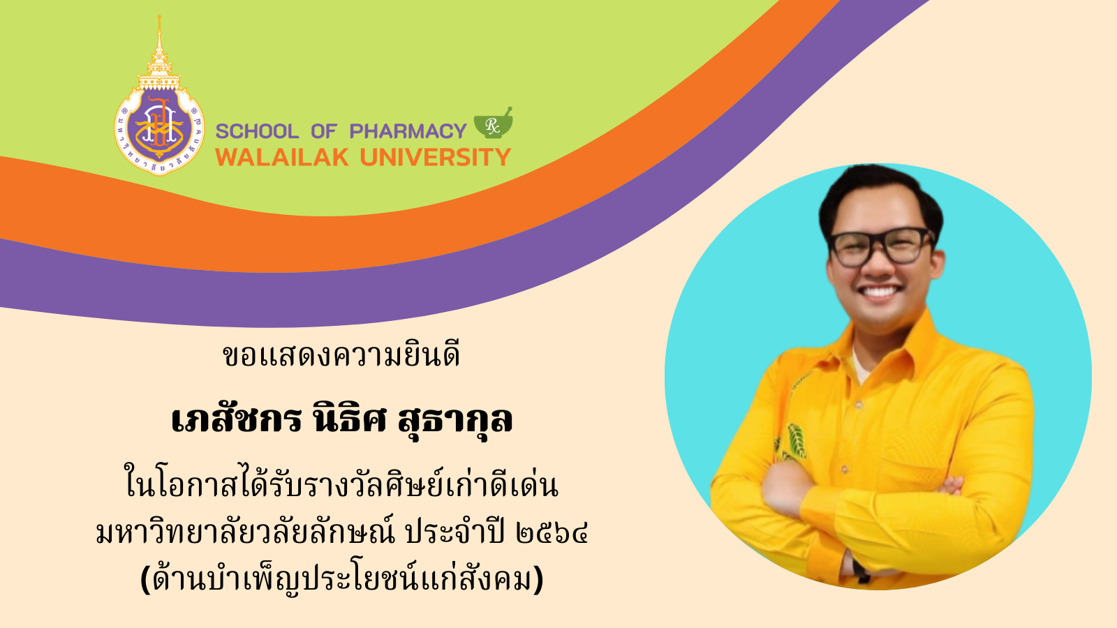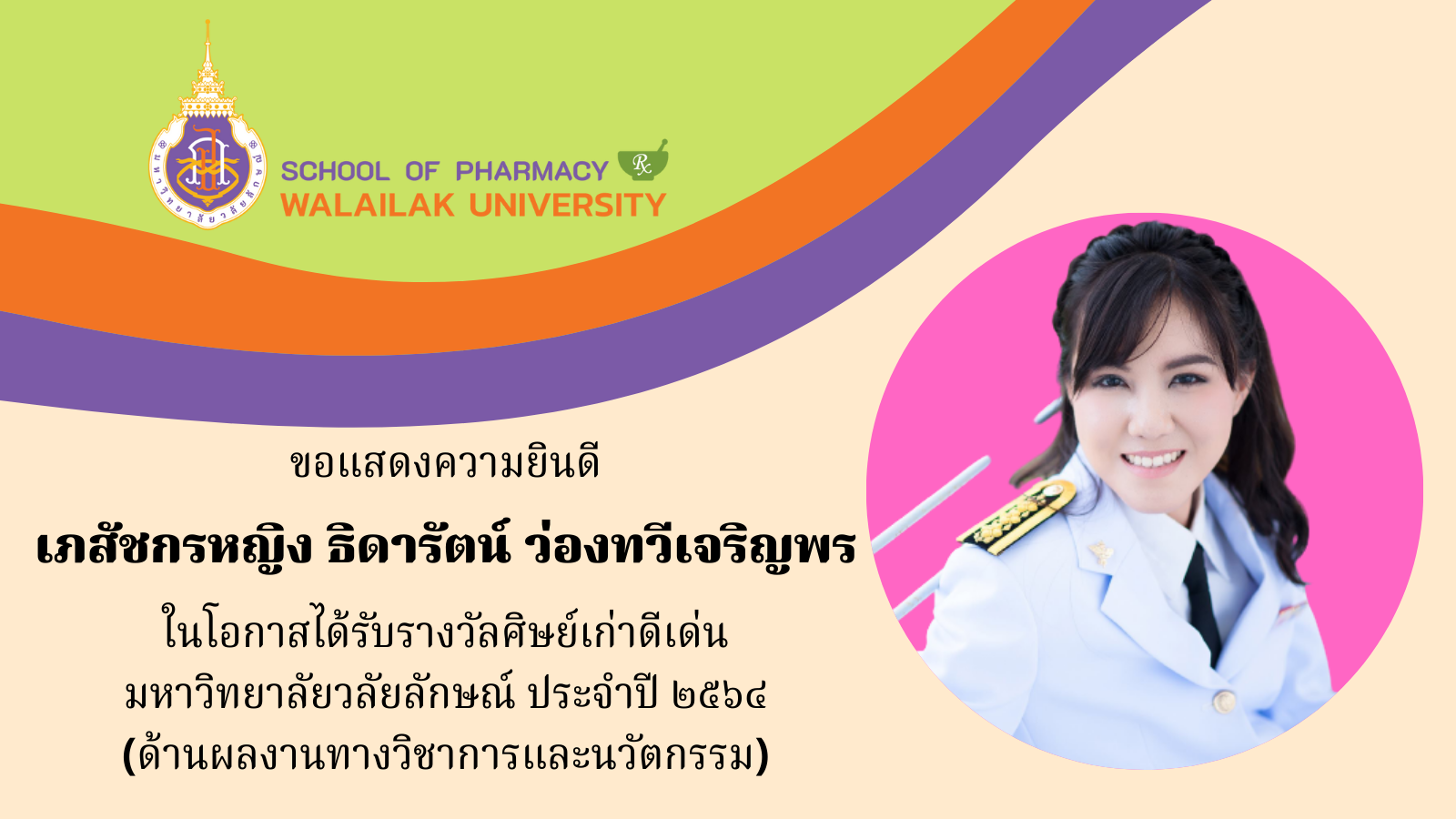 สำหรับสำนักวิชาเภสัชศาสตร์ มหาวิทยาลัยวลัยลักษณ์ มีศิษย์เก่าสำนักวิชาเภสัชศาสตร์ มหาวิทยาลัยวลัยลักษณ์ ได้รับรางวัลดังกล่าว จำนวน 4 คน ดังนี้