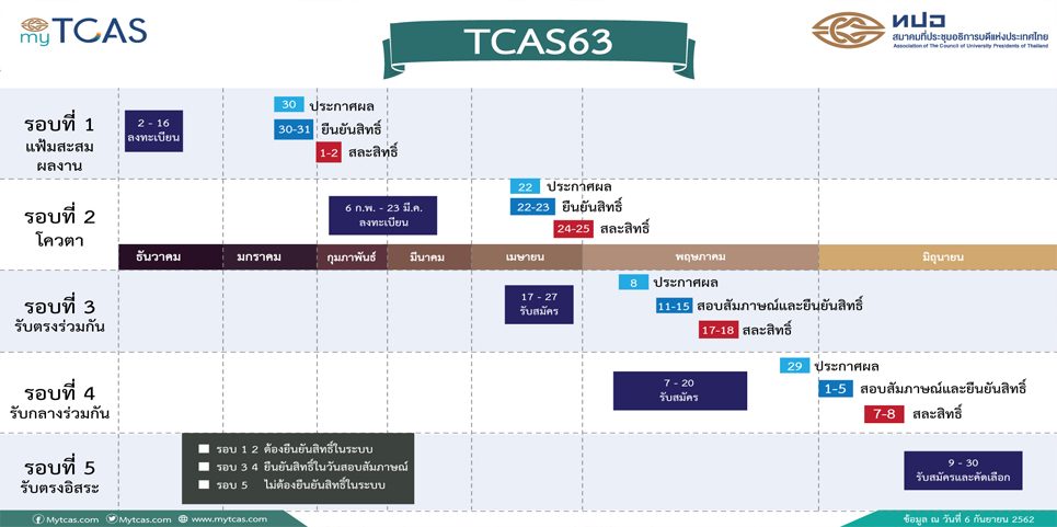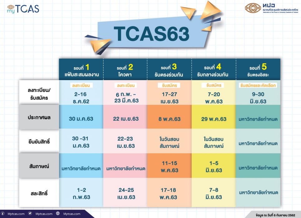 ปฏิทิน TCAS 63 ออกมาแล้ว โดยที่ประชุมอธิการบดีแห่งประเทศไทย หรือ ทปอ.