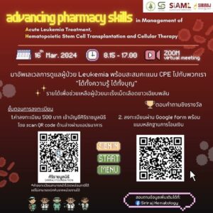 งานประชุม Advancing Pharmacy Skills in Management of Acute Leukemia Treatment, Hematopoietic Stem Cell Transplant and Cellular Therapy Read More » ธันวาคม 13, 2023