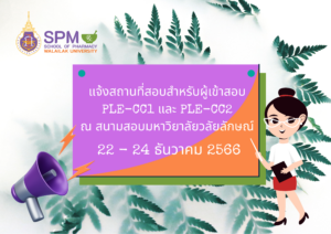 แจ้งสถานที่สอบสำหรับผู้เข้าสอบ PLE-CC1 และ PLE-CC2 ณ สนามสอบมหาวิยาลัยวลัยลักษณ์ Read More » ธันวาคม 19, 2023