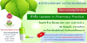 ขอเชิญชวนเภสัชกรเข้าร่วมการประชุมวิชาการ “Update in pharmacy practice” Read More » กุมภาพันธ์ 11, 2018