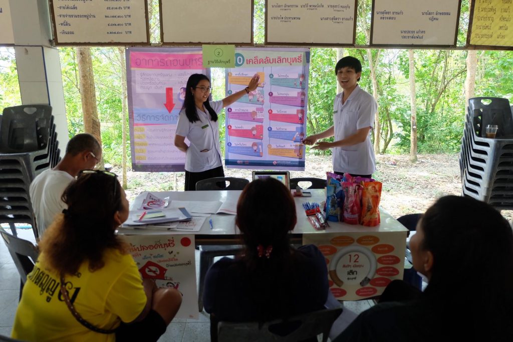 ในวันที่ 22 ม.ค. 2562 ที่ผ่านมา นักศึกษาเภสัชฯ ชั้นปีที่ 5 ได้จัดกิจกรรมบ้านพังหรันปอดใสไร้ควันบุหรี่ เพื่อรณรงค์ และให้คำปรึกษาการเลิกบุหรี่ ที่ ศาลาอเนกประสงค์ หมู่ 4 อ.นบพิตำ จ.นครศรีธรรมราช ภายในงานประกอบไปด้วยซุ้มให้ความรู้เกี่ยวกับวิธีการเลิกบุหรี่ เคล็ดลับ สมุนไพรที่ช่วย และบริการประเมินระดับการติดนิโคติน เพื่อให้คำปรึกษาถึงวิธีการรักษา