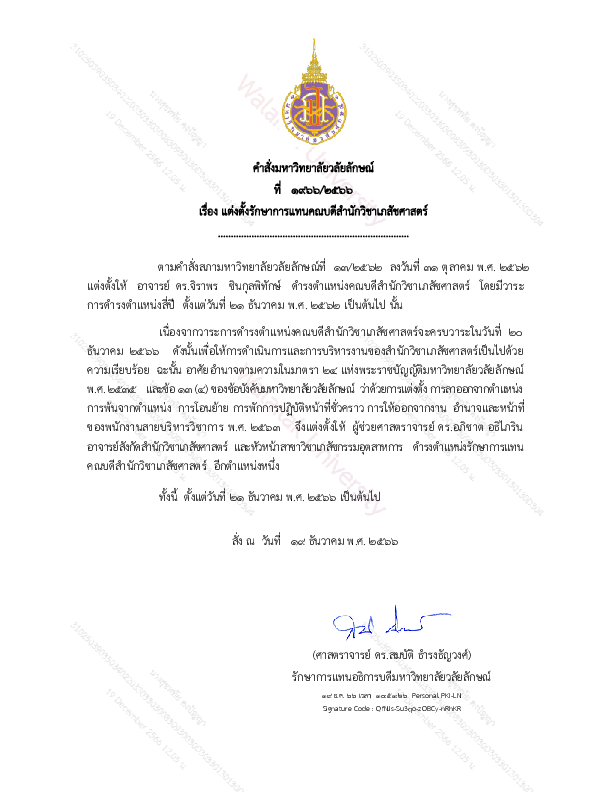 ด้วยมหาวิทยาลัยวลัยลักษณ์ได้มีคำสั่งที่ 1966/2566 ลงวันที่ 19 ธันวาคมพ.ศ. 2566 แต่งตั้งให้ ผู้ช่วยศาสตราจารย์ ดร. เภสัชกร อภิชาต อธิไภริน ดำรงตำแหน่งรักษาการแทนคณบดีสำนักวิชาเภสัชศาสตร์ มหาวิทยาลัยวลัยลักษณ์ ตั้งแต่วันที่ 21 ธันวาคม 2566 เป็นต้นไป การนี้สำนักวิชาเภสัชศาสตร์ มหาวิทยาลัยวลัยลักษณ์ ขอแสดงความยินดีมา ณ โอกาสนี้ด้วย