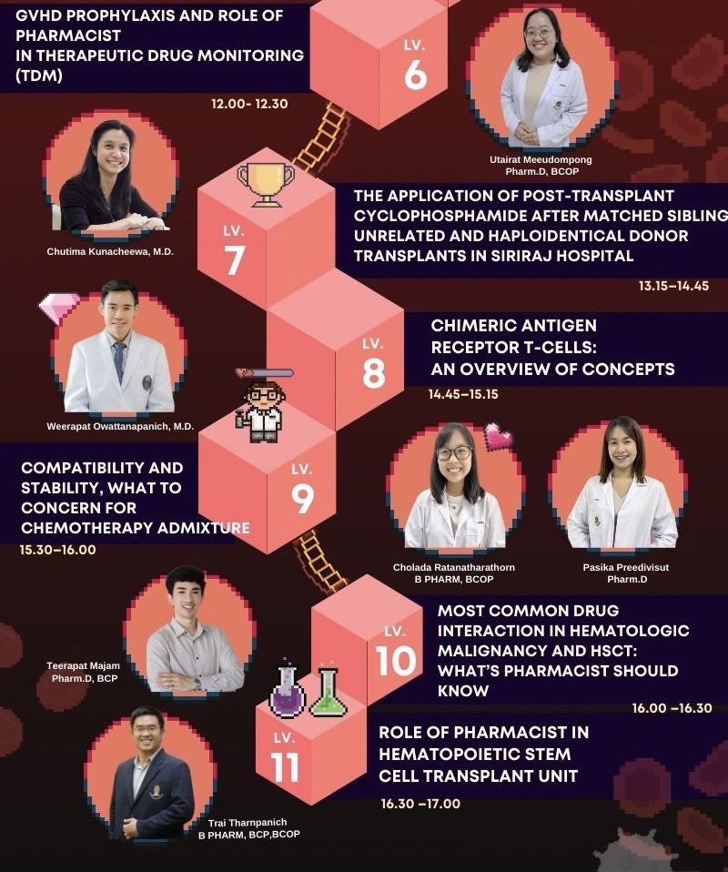 – ความรู้เกี่ยวกับ acute leukemia, stem cell transplant และ cellular therapy ใน aspect ของเภสัชกรโดยเฉพาะ