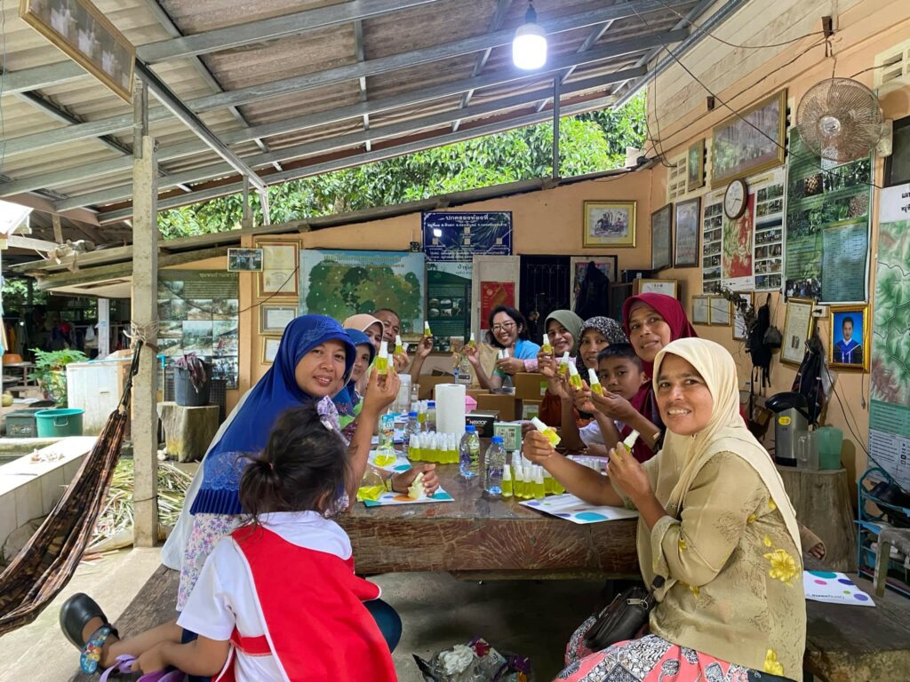 เมื่อวันที่ 5 กันยายน ที่ผ่านมา ดร.ภญ.บุษบรรณ สุขกาญจน์ หัวหน้าโครงการฯ ได้จัดอบรมด้านความรู้เชิงปฏิบัติการเพื่อถ่ายทอดความรู้และสร้างทักษะที่จะเป็นรากฐานให้แก่สมาชิกวิสาหกิจชุมชนกลุ่มกระวานบ้านเขาวัง จำนวน 15 คน ได้เข้าใจในขั้นตอนและกระบวนการพัฒนาและผลิตผลิตภัณฑ์น้ำมันนวดจากสมุนไพรในท้องถิ่นได้ด้วยตนเอง และสามารถนำไปประยุกต์ใช้ได้ในอนาคต โดยองค์ความรู้ที่ทำการถ่ายทอดประกอบด้วย 1) องค์ความรู้และกระบวนการในการสกัดน้ำมันไพลด้วยวิธีการเจียว (rendering ) คือ การใช้ความร้อนเพื่อการสกัดน้ำมันออกจากเนื้อเยื่อพืชจากส่วนลำต้นใต้ดินของไพล โดยในระหว่างการเจียวมีการเติมน้ำมันพืชที่มีจุดเดือดสูง เช่น น้ำมันปาล์ม หรือ น้ำมันมะพร้าว เพื่อช่วยทำให้น้ำมันไพลถูกสกัดแยกออกมาจากเนื้อเยื่อพืชได้ง่ายขึ้น 2) การสกัดน้ำมันกระวานไทยด้วยวิธีการกลั่นด้วยน้ำ (hydrodistillation) 3) การผลิตน้ำมันนวดจากสมุนไพร และ 4) การพัฒนาหรือปรับเปลี่ยนส่วนประกอบในตำรับน้ำมันนวดจากสมุนไพรเพื่อให้ได้กลิ่นและความรู้สึกภายหลังทาถูนวดที่พึงพอใจตามต้องการ ทั้งนี้ในโครงการฯ ได้มีนักศึกษาเภสัชศาสตร์ สาขาเภสัชกรรมอุตสาหการ ชั้นปีที่ 5 มีส่วนร่วมในขั้นตอนของการจัดเตรียมสารสกัดน้ำมันกระวานไทยเพื่อใช้ในกิจกรรมอีกด้วย