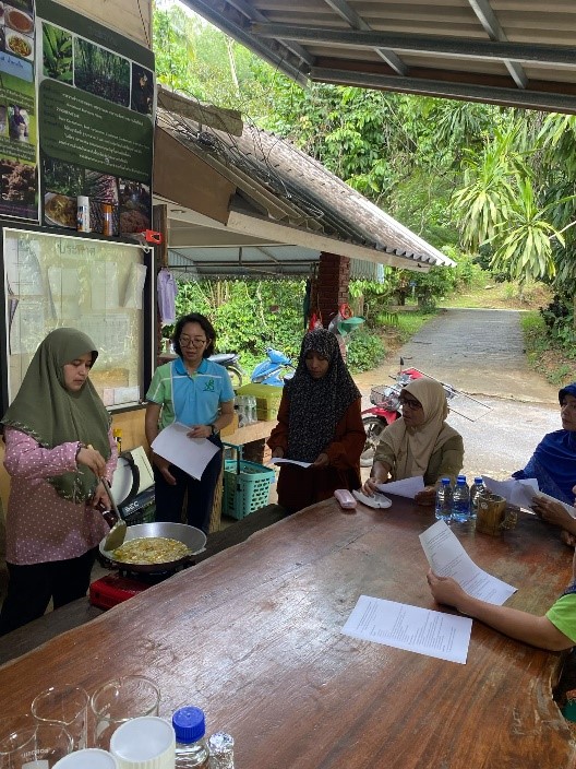 เมื่อวันที่ 5 กันยายน ที่ผ่านมา ดร.ภญ.บุษบรรณ สุขกาญจน์ หัวหน้าโครงการฯ ได้จัดอบรมด้านความรู้เชิงปฏิบัติการเพื่อถ่ายทอดความรู้และสร้างทักษะที่จะเป็นรากฐานให้แก่สมาชิกวิสาหกิจชุมชนกลุ่มกระวานบ้านเขาวัง จำนวน 15 คน ได้เข้าใจในขั้นตอนและกระบวนการพัฒนาและผลิตผลิตภัณฑ์น้ำมันนวดจากสมุนไพรในท้องถิ่นได้ด้วยตนเอง และสามารถนำไปประยุกต์ใช้ได้ในอนาคต โดยองค์ความรู้ที่ทำการถ่ายทอดประกอบด้วย 1) องค์ความรู้และกระบวนการในการสกัดน้ำมันไพลด้วยวิธีการเจียว (rendering ) คือ การใช้ความร้อนเพื่อการสกัดน้ำมันออกจากเนื้อเยื่อพืชจากส่วนลำต้นใต้ดินของไพล โดยในระหว่างการเจียวมีการเติมน้ำมันพืชที่มีจุดเดือดสูง เช่น น้ำมันปาล์ม หรือ น้ำมันมะพร้าว เพื่อช่วยทำให้น้ำมันไพลถูกสกัดแยกออกมาจากเนื้อเยื่อพืชได้ง่ายขึ้น 2) การสกัดน้ำมันกระวานไทยด้วยวิธีการกลั่นด้วยน้ำ (hydrodistillation) 3) การผลิตน้ำมันนวดจากสมุนไพร และ 4) การพัฒนาหรือปรับเปลี่ยนส่วนประกอบในตำรับน้ำมันนวดจากสมุนไพรเพื่อให้ได้กลิ่นและความรู้สึกภายหลังทาถูนวดที่พึงพอใจตามต้องการ ทั้งนี้ในโครงการฯ ได้มีนักศึกษาเภสัชศาสตร์ สาขาเภสัชกรรมอุตสาหการ ชั้นปีที่ 5 มีส่วนร่วมในขั้นตอนของการจัดเตรียมสารสกัดน้ำมันกระวานไทยเพื่อใช้ในกิจกรรมอีกด้วย