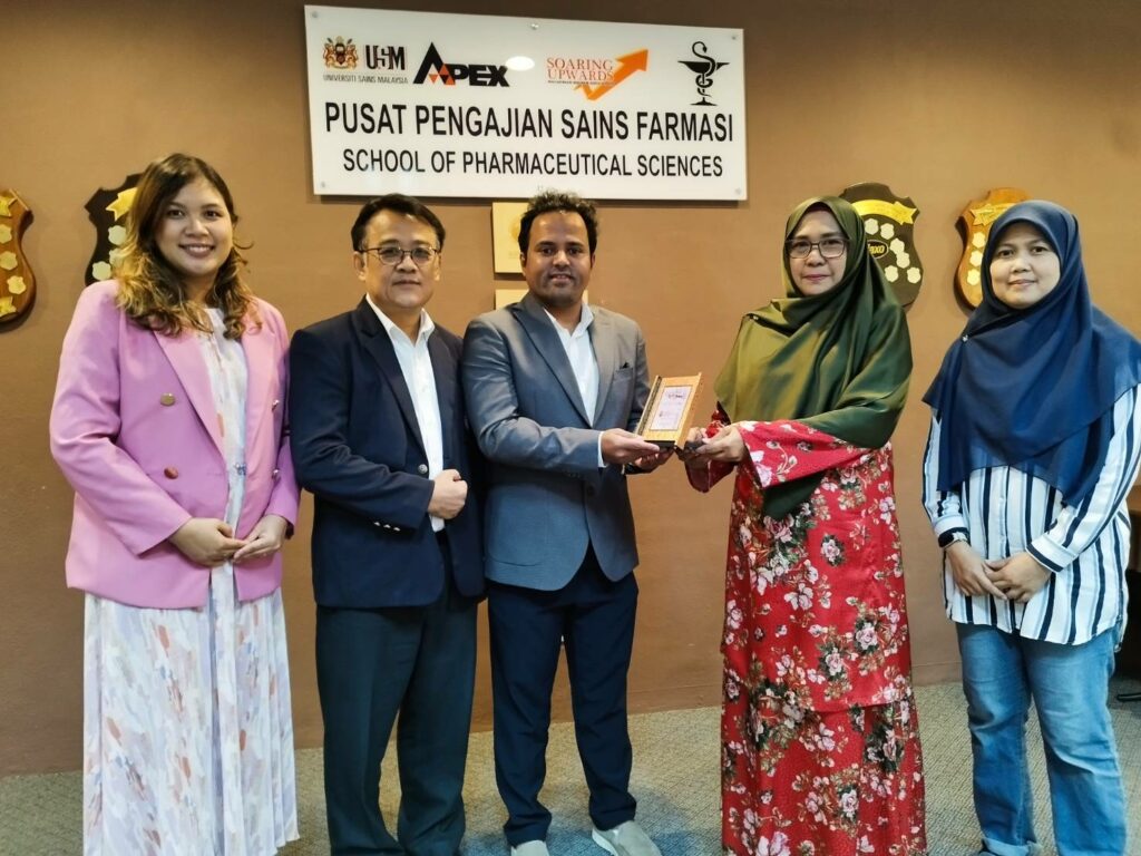 เมื่อวันอังคารที่ 27 กุมภาพันธ์ พ.ศ. 2567 ตัวแทนคณาจารย์จากสำนักวิชาเภสัชศาสตร์ มหาวิทยาลัยวลัยลักษณ์ จำนวน 3 คน ได้แก่ Assistant Professor Dr. Amit JAISI, ผู้ช่วยศาสตราจารย์ ดร. ณัฐิกานต์ นกแก้ว และ ผู้ช่วยศาสตราจารย์ ดร. เภสัชกร บุญส่ง หวังสินทวีกุล ได้ไปศึกษาดูงาน ณ School of Pharmaceutical Sciences, Universiti Sains Malaysia เมืองปีนัง ประเทศมาเลเซีย ภายใต้การดำเนินงานของศูนย์กิจการนานาชาติ มหาวิทยาลัยวลัยลักษณ์ โดยได้รับการต้อนรับอย่างอบอุ่น นำทีมโดย Associate Prof. Dr. Salizawati Muhamad Salhimi รองคณบดี พร้อมด้วยคณาจารย์ หลังจากที่ได้มีการแนะนำตัวของทั้งสองฝ่ายแล้ว ได้มีการนำเสนอข้อมูลต่าง ๆ ที่สำคัญของแต่ละฝ่าย รวมทั้งข้อมูลเกี่ยวกับการเรียนการสอน การวิจัย และกิจกรรมทางวิชาการที่มีโอกาสดำเนินการร่วมกัน โดยเฉพาะการแลกเปลี่ยนนักวิจัย และนักศึกษา รวมทั้งการร่วมดำเนินการขอทุนวิจัยร่วมกัน เป็นต้น หลังจากนั้นตัวแทนคณาจารย์จากสำนักวิชาเภสัชศาสตร์ มหาวิทยาลัยวลัยลักษณ์ ได้มีโอกาสเข้าเยี่ยมชมสถานที่การเรียนการสอน และการวิจัยของ School of Pharmaceutical Sciences, Universiti Sains Malaysia อีกด้วย