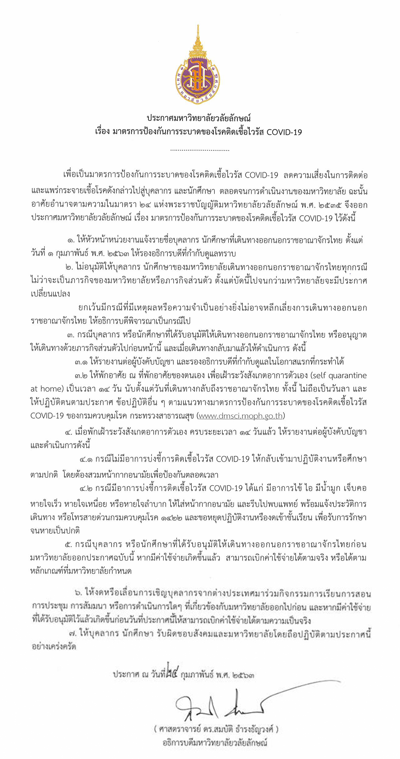 ประกาศมหาวิทยาลัยวลัยลักษณ์ เรื่องมาตรการป้องกันการระบาดของโรคติดเชื้อไวรัส COVID-19ข่าวประชาสัมพันธ์ / กุมภาพันธ์ 25, 2020