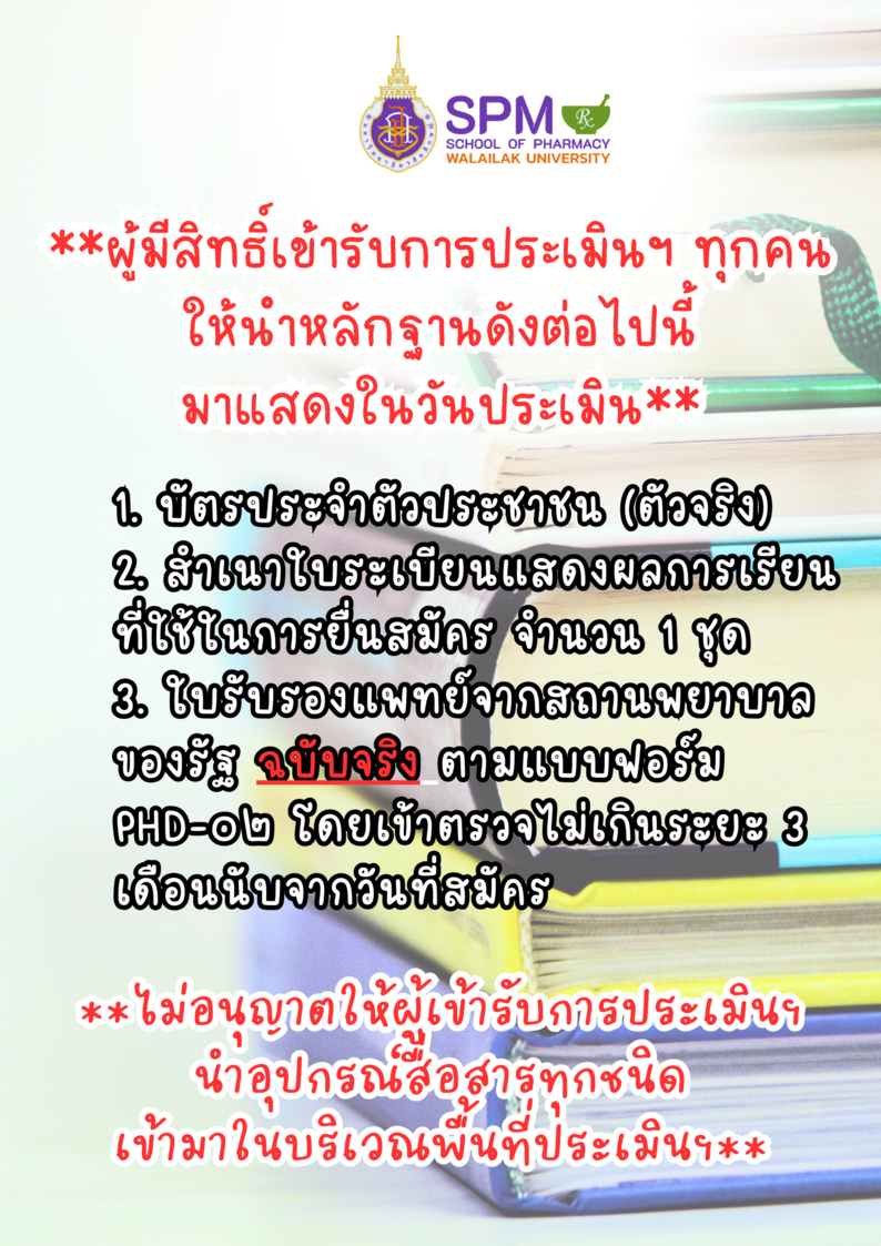 เมื่อเย็นวันเสาร์ที่ 20 มกราคม พ.ศ. 2567 ได้มีการประกาศรายชื่อของผู้สมัคร TCAS67 รอบ Portfolio ของสำนักวิชาเภสัชศาสตร์ มหาวิทยาลัยวลัยลักษณ์ ซึ่งปีนี้เป็นปีที่ 18 แล้วในการรับนักศึกษาเภสัชศาสตร์ จากการเปิดเผยของ อาจารย์ ดร. เภสัชกรหญิง จิราพร ชินกุลพิทักษ์ ประธานคณะกรรมการคัดเลือกนักศึกษาเภสัชศาสตร์ ประจำปีการศึกษา 2567 ใน TCAS67 ซึ่งในรอบแรกนี้ เป็นรอบ Portfolio ซึ่งเปิดรับสมัครยาว ๆ ทั้งประเทศแบบออนไลน์ ผ่าน https://entry.wu.ac.th มาตั้งแต่วันที่ 9 กันยายน พ.ศ. 2566 ที่ผ่านมา โดยรับสมัครถึง 15 มกราคม พ.ศ. 2567 มีผู้สนใจสมัครกว่า 2,900 คน สำหรับปีนี้นอกจากการใช้ผลการเรียนของผู้สมัครในการสมัครแล้ว ยังมีการใช้คะแนน TGAT และ TPAT3 ร่วมกับผลงานทางวิชาการที่เกี่ยวข้อง จำนวน 1 ชิ้น สำหรับรายชื่อผู้ที่ผ่านเข้ารอบเพื่อการประเมินทัศนคติทางเภสัชศาสตร์ จำนวน 290 คน ได้ประกาศไปทางระบบแล้วในวัน และเวลาเดียวกัน พร้อมทั้งกำหนดวัน และช่วงเวลาที่จะเข้ารับการประเมินทัศนคติทางเภสัชศาสตร์ โดยผู้มีสิทธิ์สามารถเข้าเป็นสมาชิกในกลุ่ม facebook เพื่อรับข้อมูล และประสานงานที่เกี่ยวข้อง และยังสามารถติดต่อสอบถามสำนักวิชาเภสัชศาสตร์ทุกช่องทางที่มี รวมทั้ง Line official ของสำนักวิชาเภสัชศาสตร์อีกด้วย