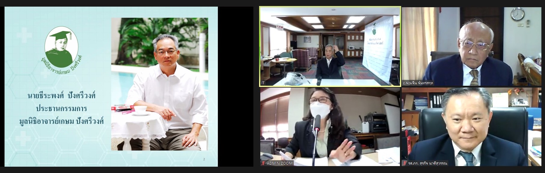 เมื่อวันพฤหัสบดีที่ 2 ธันวาคม 2564 มูลนิธิอาจารย์เกษม ปังศรีวงศ์ ได้จัดกิจกรรมมอบทุนการศึกษาแก่นักศึกษาเภสัชศาสตร์ และมอบทุนโครงการวิจัยต่าง ๆ แก่เภสัชกรในหลากหลายสาขาที่ดำเนินการโครงการที่เป็นประโยชน์ต่อสังคมและเป็นประโยชน์ในแวดวงเภสัชกรรม โดยคุณธีระพงศ์ ปังศรีวงศ์ ประธานมูลนิธิอาจารย์เกษม ปังศรีวงศ์ ได้เป็นประธานในพิธีมอบทุนดังกล่าว โดยมี ศาสตราจารย์ (พิเศษ) ดร.เภสัชกร จอมจิน จันทรสกุล ได้กล่าวความเป็นมาของการมอบทุนการศึกษาแก่เภสัชกร และนักศึกษาเภสัชศาสตร์ และแสดงความยินดีกับผู้รับทุนดังกล่าว