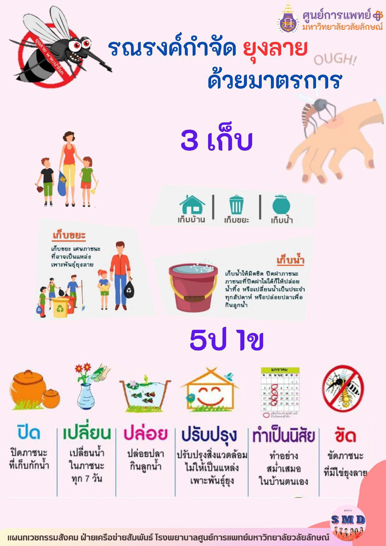 ในการนี้ ฝ่ายเครือข่ายสัมพันธ์ โรงพยาบาลศูนย์การแพทย์มหาวิทยาลัยวลัยลักษณ์ ขอเผยแพร่สถานการณ์โรคติดต่อที่ต้องเฝ้าระวัง ประจำเดือน มิถุนายน พ.ศ. ๒๕๖๖ และประชาสัมพันธ์มาตรการการป้องกันโรคโควิด-๑๙ และโรคไข้เลือดออก รายละเอียดตามเอกสารแนบ