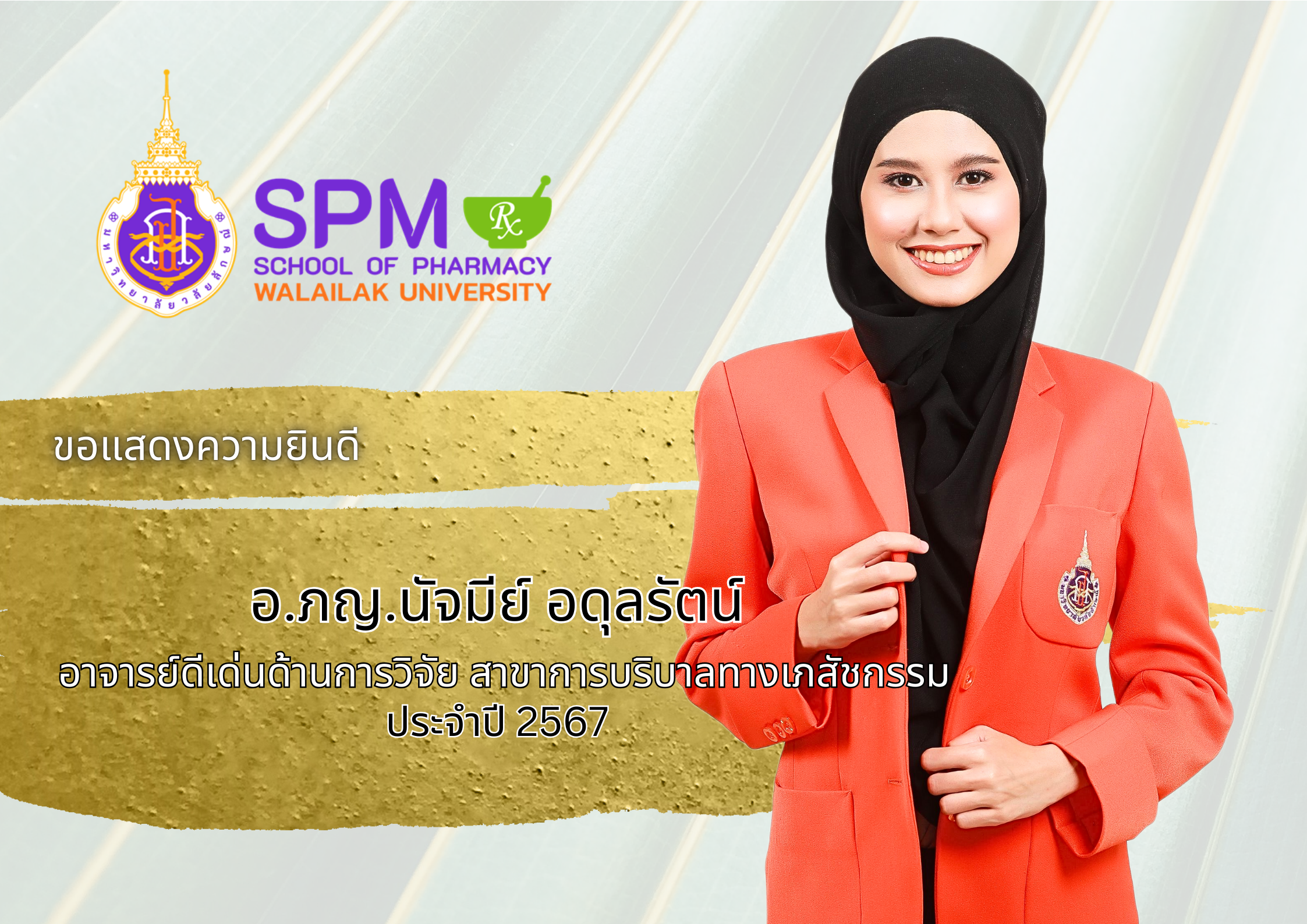 ขอแสดงความยินดีกับบุคลากรของสำนักวิชาเภสัชศาสตร์ มหาวิทยาลัยวลัยลักษณ์ ที่ได้รับรางวัลเชิดชูเกียรติในครั้งนี้