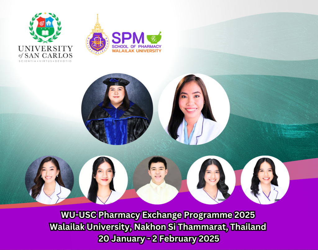 เมื่อเช้าวันจันทร์ที่ 20 มกราคม พ.ศ. 2568 สำนักวิชาเภสัชศาสตร์ มหาวิทยาลัยวลัยลักษณ์ นำทีมโดย ผู้ช่วยศาสตราจารย์ ดร. เภสัชกรหญิง ฉวีวรรณ คล่องศิริเวช รักษาการแทนคณบดีสำนักวิชาเภสัชศาสตร์ ร่วมกับผู้บริหารของสำนักวิชาเภสัชศาสตร์ คณาจารย์ บุคลากร และนักศึกษาเภสัชศาสตร์ ให้การต้อนรับคณาจารย์ จำนวน 2 คน และนักศึกษาเภสัชศาสตร์ จำนวน 5 คน จาก University of San Carlos ประเทศฟิลิปปินส์ ในโครงการ WU-USC Pharmacy Exchange Programme 2025 ณ สำนักวิชาเภสัชศาสตร์ มหาวิทยาลัยวลัยลักษณ์ และในหน่วยงานที่เกี่ยวข้อง ในระหว่างวันที่ 20 มกราคม – 2 กุมภาพันธ์ พ.ศ. 2568 ซึ่งนอกจากการได้ศึกษาดูงานด้านเภสัชศาสตร์ของประเทศไทย ยังมีการแลกเปลี่ยนเรียนรู้เกี่ยวกับเภสัชศาสตร์ศึกษา และนักศึกษาเภสัชศาสตร์จากประเทศฟิลิปปินส์จะได้มีโอกาสเรียนรู้ และทำวิจัยร่วมกับคณาจารย์ของสำนักวิชาเภสัชศาสตร์ มหาวิทยาลัยวลัยลักษณ์ อีกด้วย
