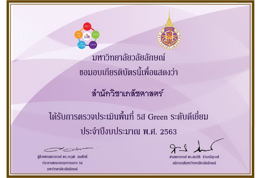 เมื่อวันที่ 9 กันยายน 2563 ที่ผ่านมา อาจารย์ ดร.จิราพร ชินกุลพิทักษ์ คณบดีสำนักวิชาเภสัชศาสตร์ คณาจารย์และบุคลากร เข้าร่วมกิจกรรม “Show & Share 5ส สร้างสุขทั่วทั้งองค์กร” ประจำปีงบประมาณ 2563 ของมหาวิทยาลัยวลัยลักษณ์ ณ อาคารปฏิบัติการทางสถาปัตยกรรมเเละการออกแบบ โดยได้รับเกียรติจากศาสตราจารย์ ดร.สมบัติ ธำรงธัญวงศ์ อธิการบดีมหาวิทยาลัยวลัยลักษณ์ เป็นประธานในพิธีเปิด กิจกรรมครั้งนี้จัดขึ้นเพื่อเพื่อสร้างความตระหนักและเห็นความสำคัญในการทำกิจกรรม 5ส รวมถึงเรื่องของการดูแลสุขภาพควบคู่กันไปอันก่อให้เกิดความสุขในการทำงาน ซึ่งมีกิจกรรมมากมายภายในงาน เช่น กิจกรรมเชิดชูเกียรติบุคลากรและหน่วยงานที่ได้รับผลการประเมินตามมาตรฐาน 5ส กิจกรรม Show & Share Best Practice การดำเนินงานด้าน 5ส นอกจากนี้ยังมีการมอบรางวัลให้แก่หน่วยงานที่ได้รับรางวัลดีเยี่ยม จำนวน 14 หน่วยงาน รางวัลดีเด่น จำนวน 21 หน่วยงาน และรางวัลดีมากจำนวน 4 หน่วยงาน ซึ่งสำนักวิชาเภสัชศาสตร์ได้รับรางวัลดีเยี่ยม พร้อมด้วยเงินรางวัล 1000 บาท โดยอาจารย์ ดร.อรรถรัตน์ พัฒนวงศา เป็นตัวแทนสำนักวิชาฯในการรับมอบรางวัลในครั้งนี้