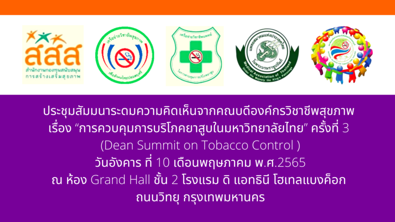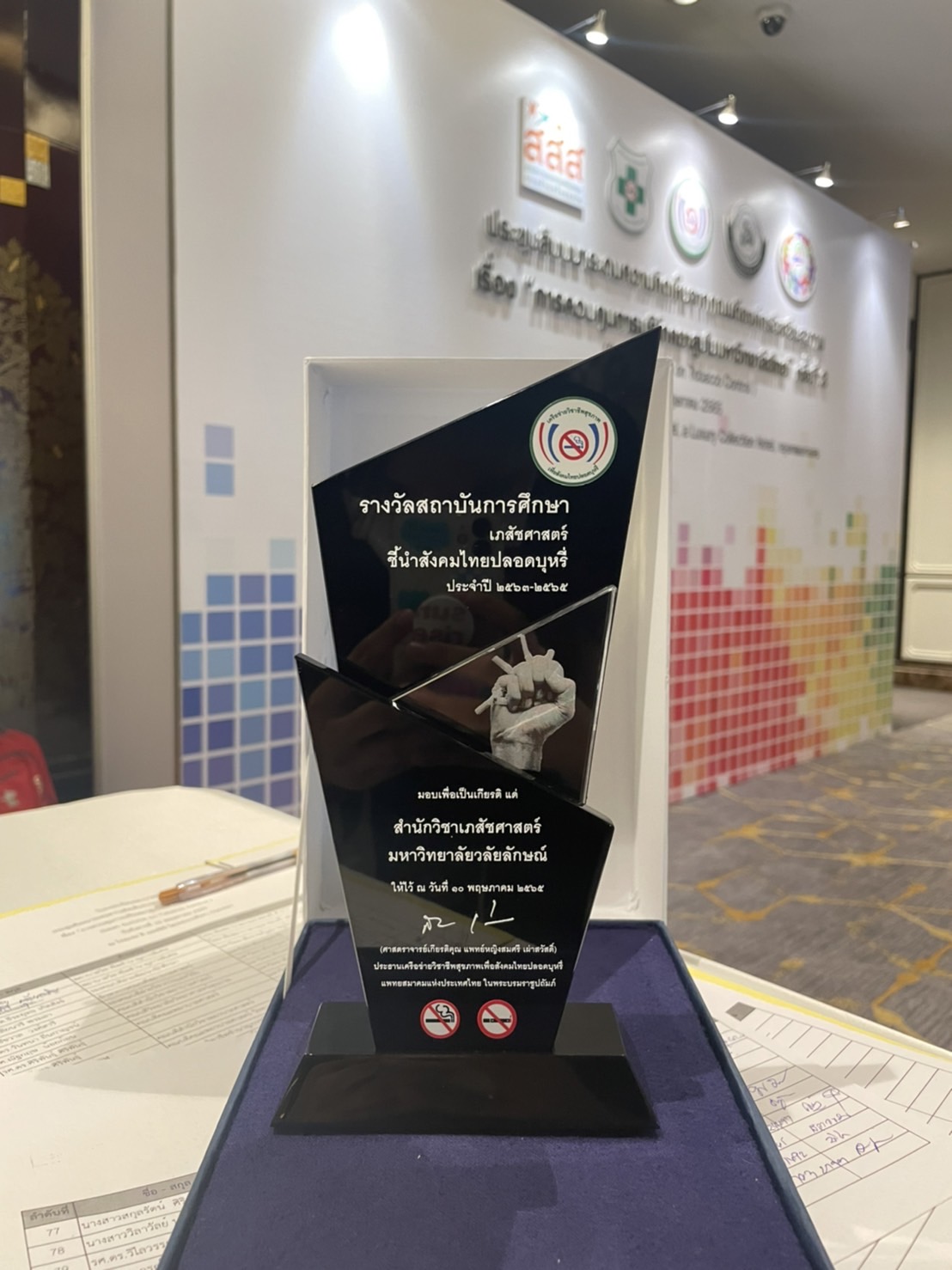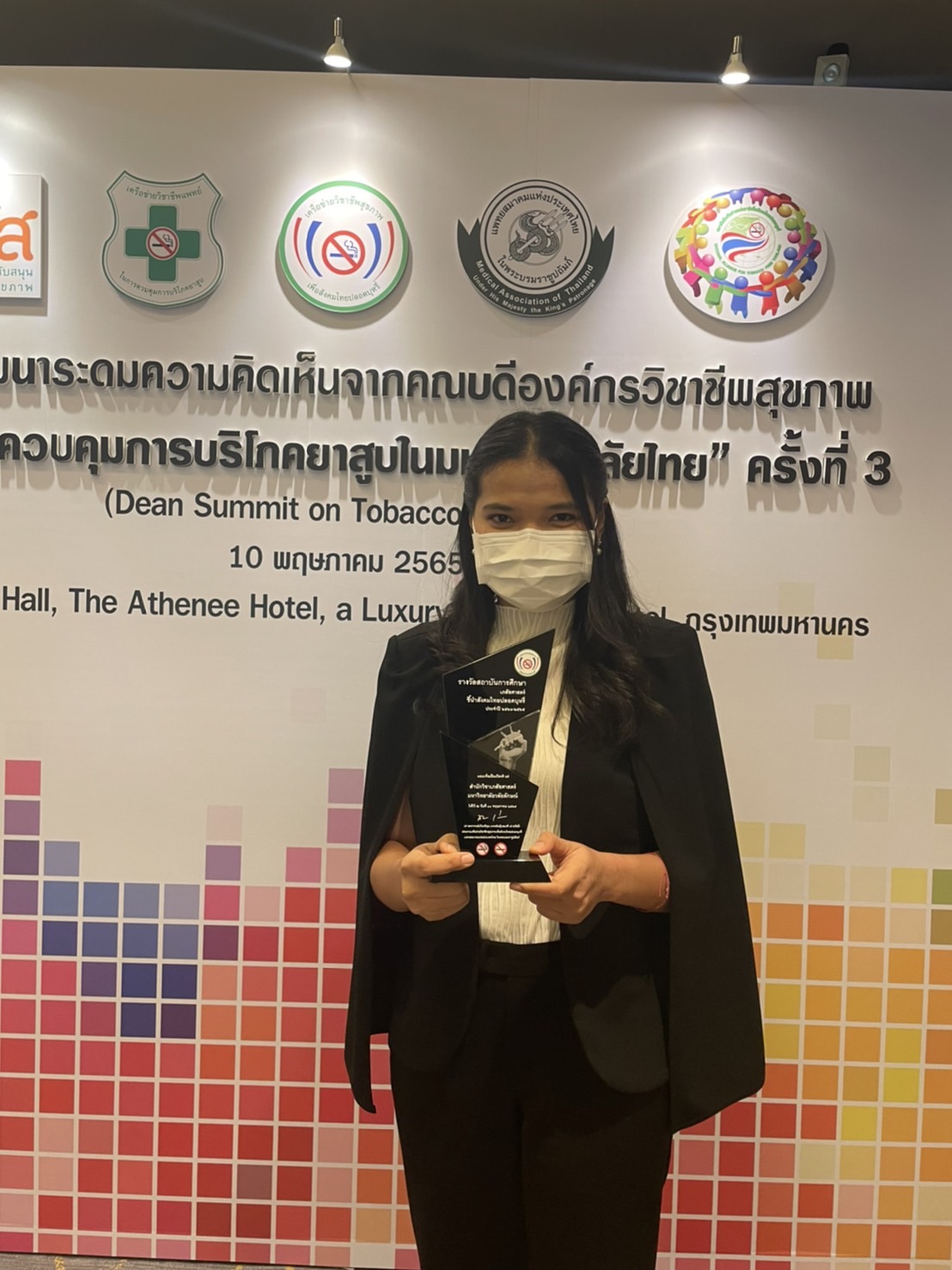 อาจารย์ เภสัชกรหญิง ทิวาพร ทองสุทธิ์ เป็นตัวแทนสำนักวิชาเภสัชศาสตร์ มหาวิทยาลัยวลัยลักษณ์ เข้าร่วมประชุมสัมมนาระดมความคิดเห็นจากคณบดีองค์กรวิชาชีพสุขภาพ เรื่อง “การควบคุมการบริโภคยาสูบในมหาวิทยาลัยไทย” ครั้งที่ 3 (Dean Summit on Tobacco Control) เมื่อวันอังคาร ที่ 10 เดือนพฤษภาคม พ.ศ.2565 ณ ห้อง Grand Hall ชั้น 2 โรงแรม ดิ แอทธินี โฮเทลแบงค็อก ถนนวิทยุ กรุงเทพมหานคร ในการนี้ได้ร่วมลงนามในเครือข่ายวิชาชีพสุขภาพเพื่อสังคมไทยปลอดบุหรี่ และเข้ารับรางวัลสถาบันการศึกษาชี้นำสังคมไทยปลอดบุหรี่ ร่วมกับองค์กรวิชาชีพต่าง ๆ