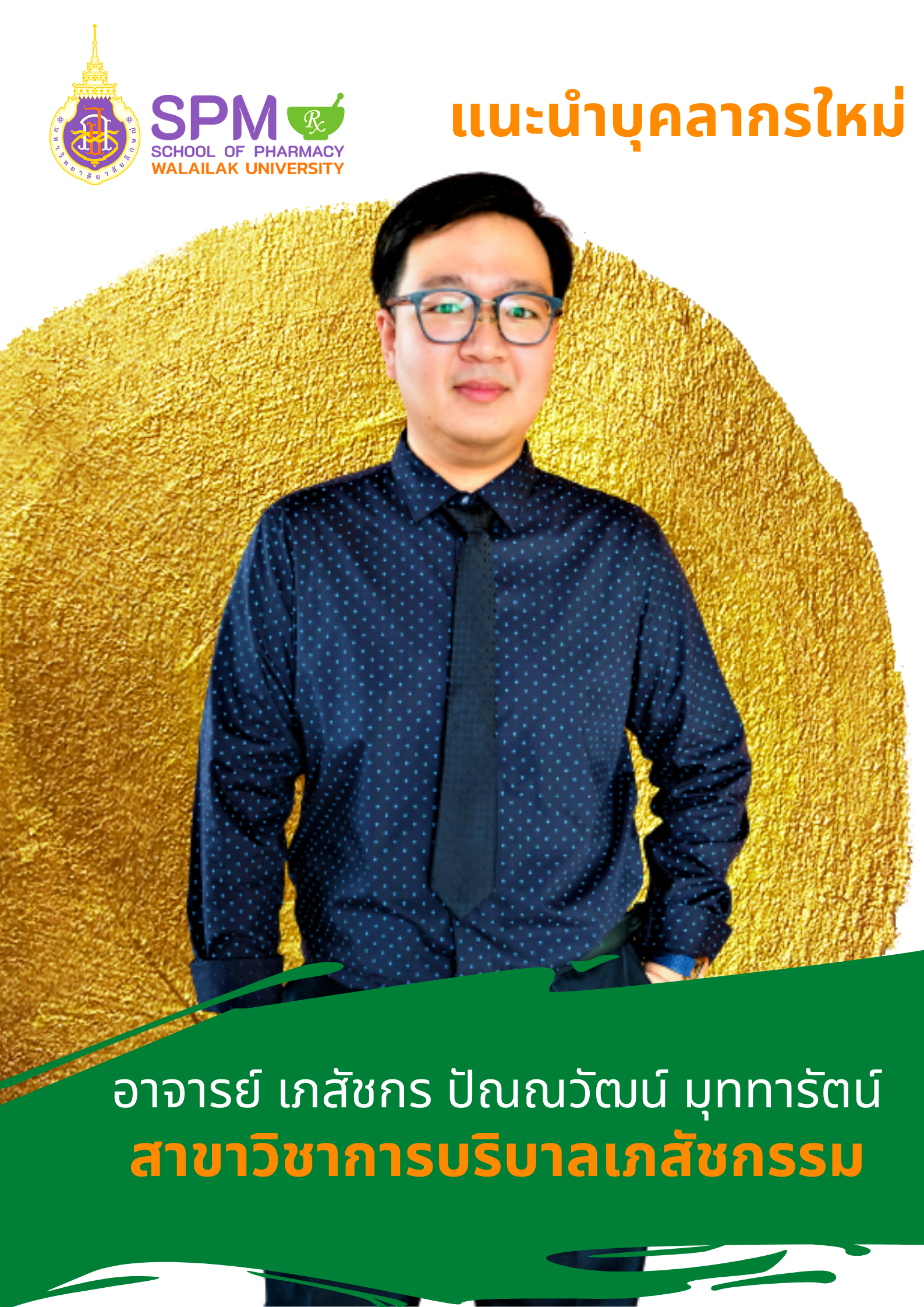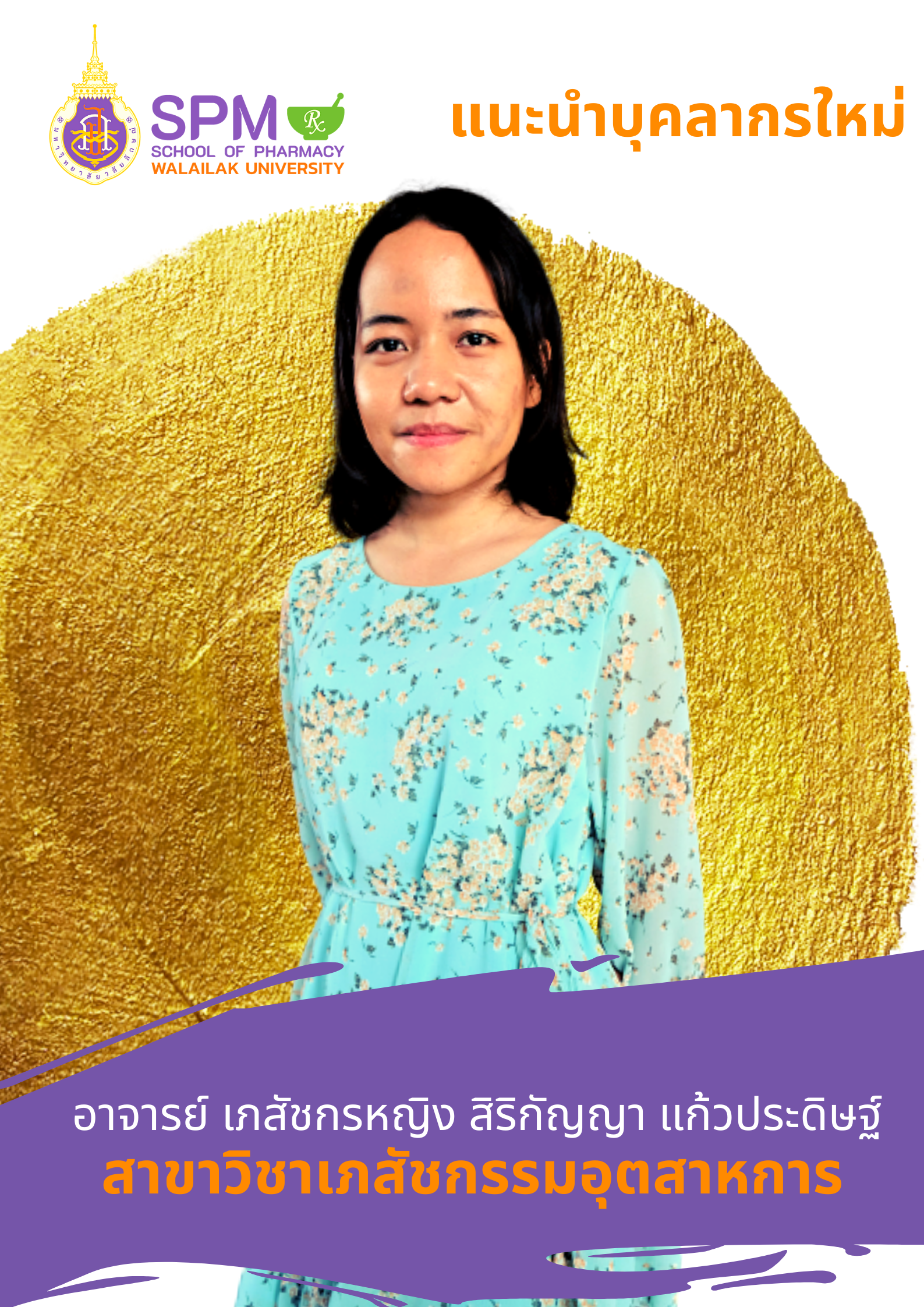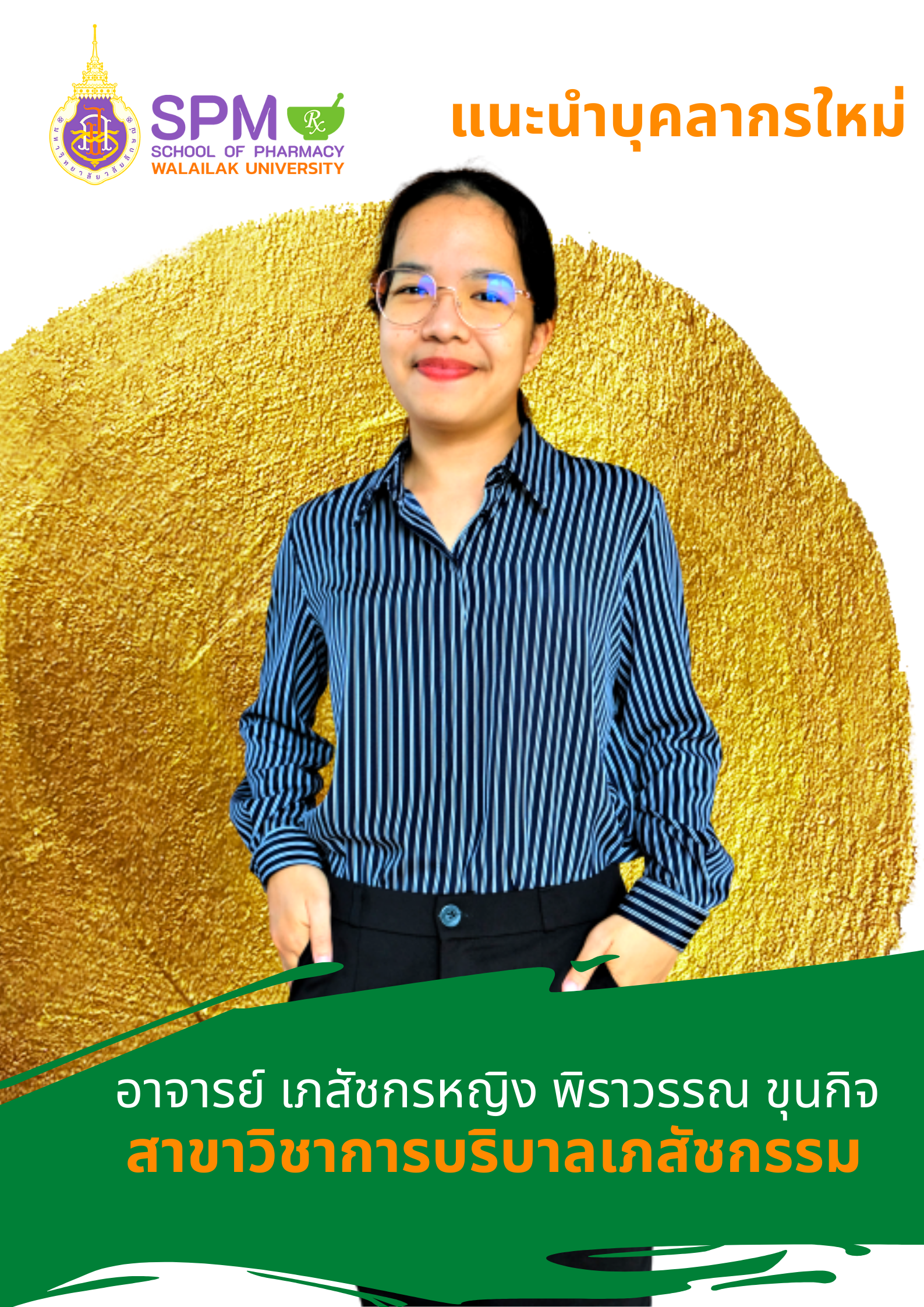 สำนักวิชาเภสัชศาสตร์ มหาวิทยาลัยวลัยลักษณ์ ขอแนะนำบุคลากรใหม่ (สายวิชาการ) จำนวน 3 คน ซึ่งเริ่มปฏิบัติงาน ณ สำนักวิชาเภสัชศาสตร์ มหาวิทยาลัยวลัยลักษณ์ ในช่วงเดือนพฤษภาคม – มิถุนายน 2565 ดังนี้