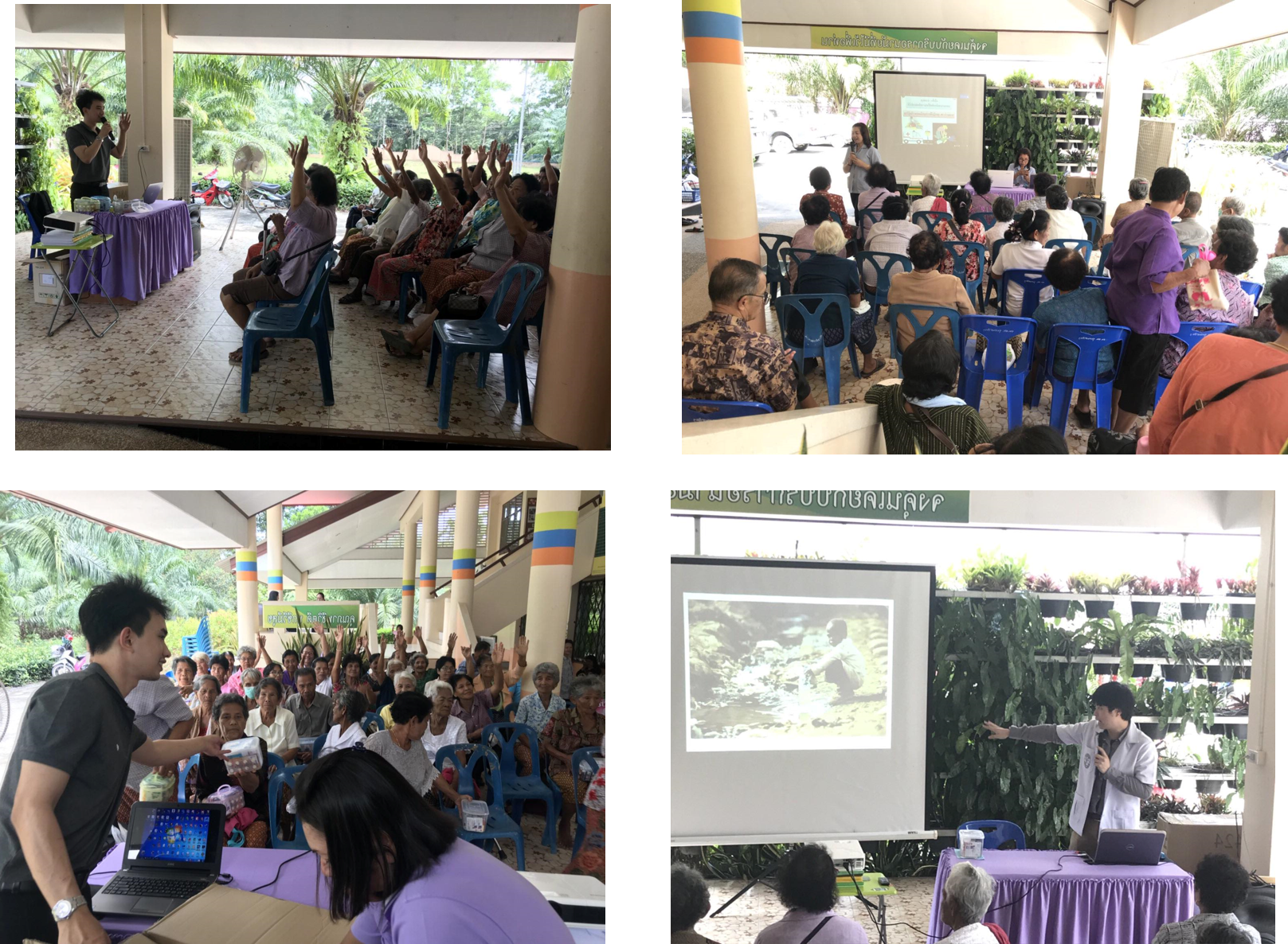 โดยกิจกรรมดังกล่าวผู้เข้าร่วมเป็นผู้สูงอายุและเจ้าหน้าที่อาสาสมัครสาธารณสุขประจำหมู่บ้าน (อสม.) และบุคลากรสาธารณสุขจากโรงพยาบาลท่าศาลา โครงการทั้งหมดจำนวน 109 คน โดยโครงการดังกล่าวได้รับการตอบรับและความพึงพอใจจากผู้เข้าร่วมเป็นอย่างดี