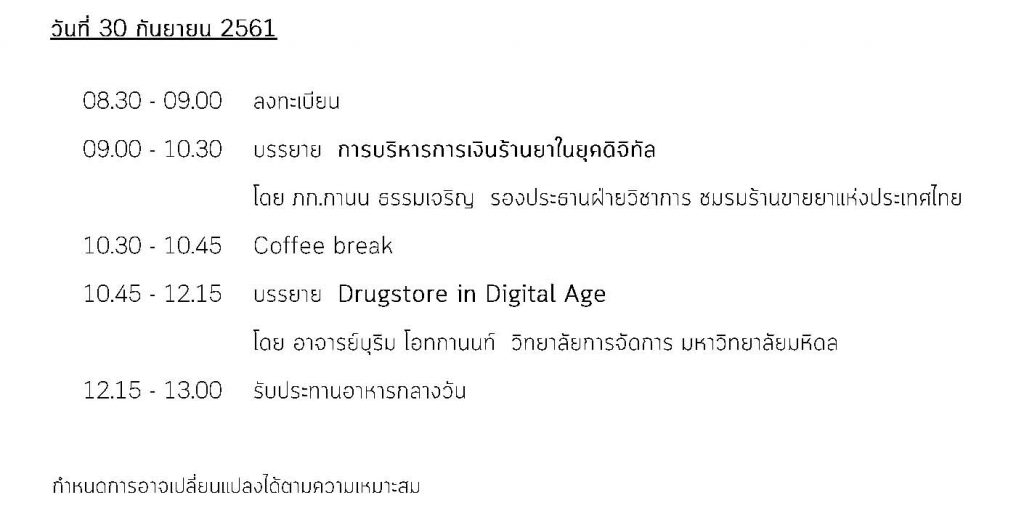จัดโดยสำนักวิชาเภสัชศาสตร์ มหาวิทยาลัยวลัยลักษณ์ วันที่ 29 – 30 กันยายน พ.ศ. 2561 ณ โรงแรมดีวาน่า พลาซ่า อ่าวนาง จังหวัดกระบี่