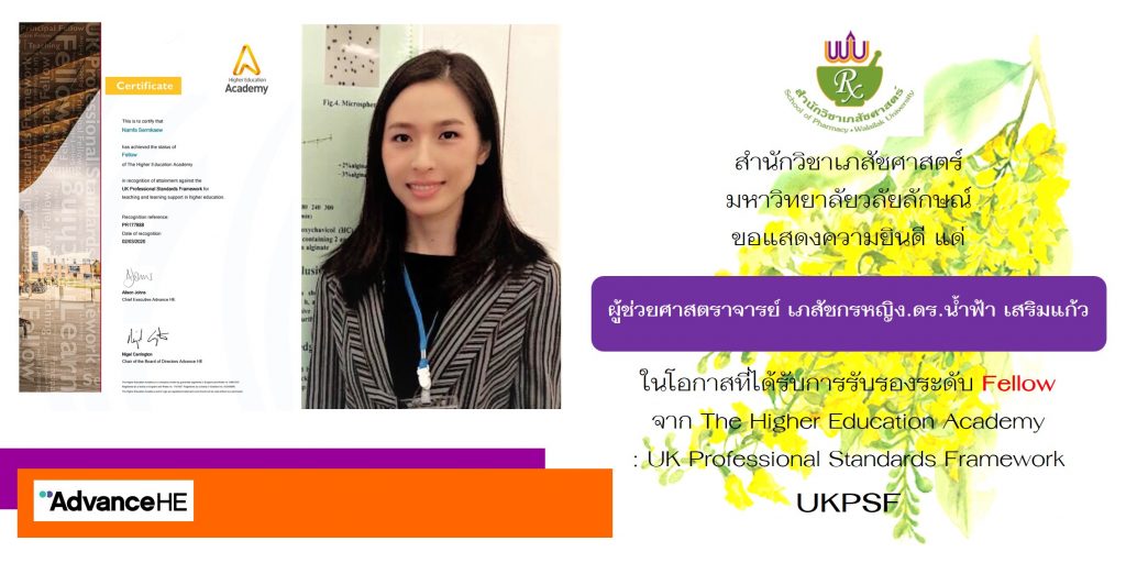 ผศ.ภญ.ดร.น้ำฟ้า อาจารย์เภสัช มวล. ได้รับการรับรองมาตรฐาน UKPSF ในระดับ “Fellow” คนล่าสุด Read More »