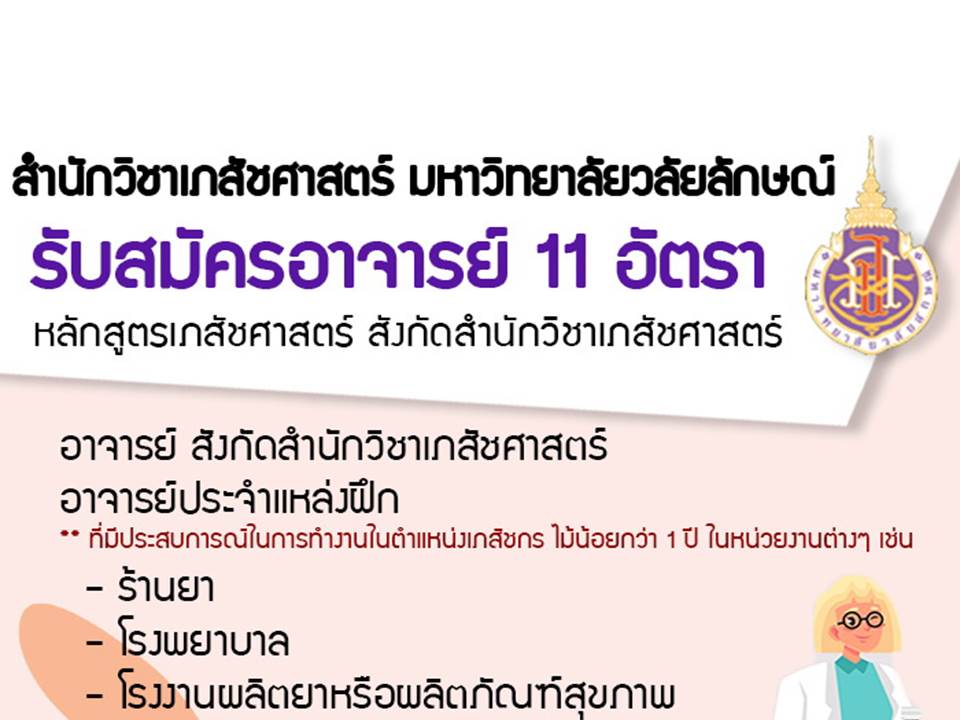 สำนักวิชาเภสัชศาสตร์ มหาวิทยาลัยวลัยลักษณ์ รับสมัครนักศ