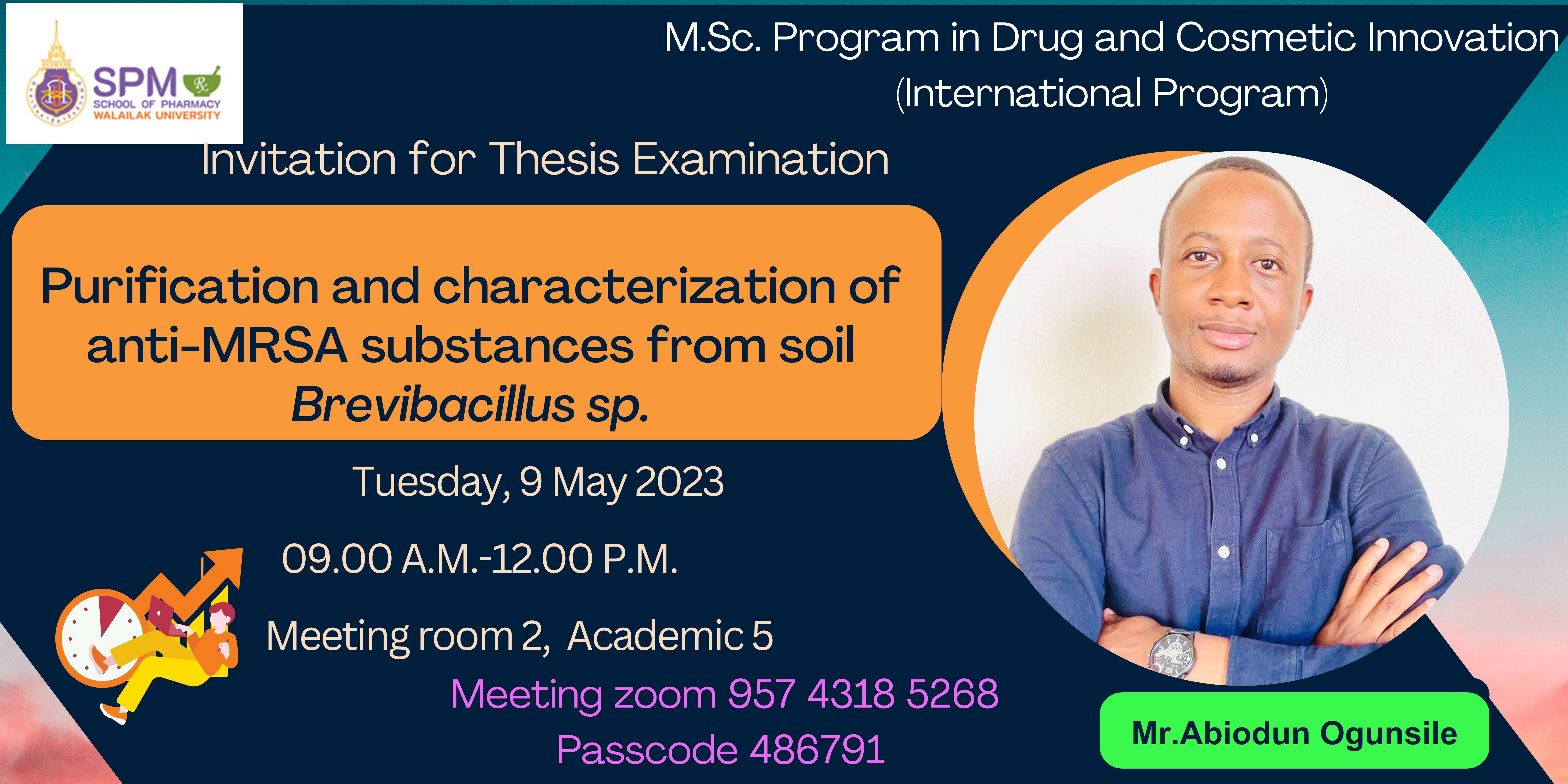 ขอเชิญเข้าร่วมฟังการสอบวิทยานิพนธ์ของMr.Abiodun Ogunsile