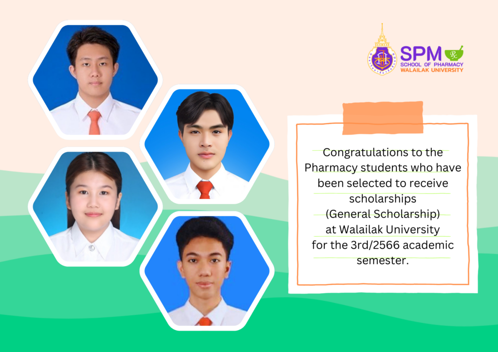The School of Pharmacy, Walailak University, extends its heartfelt congratulations to Mr. Napason Ngundi, a third-year pharmacy student, and Ms. Pennapa Lekwaree, a fourth-year pharmacy student, who have been awarded the Kasem Pangsriwong Foundation Scholarship for the year 2025. The two recipients received a total scholarship amount of 60,000 THB on Tuesday, 25 November 2025. […]