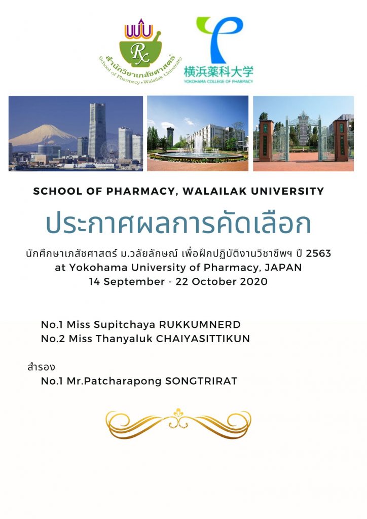 School of Pharmacy, Center of International Affairs, Czech Academy of Sciences, and Institute of Microbiology of the Czech Academy of Sciences organized the Hybrid workshop on the topic “์New Bioactive metabolites from soil and marine Actinobacteria – Looking for a needle in a haystack” For the on-site Venue at Walailak University Hospital Conference room 4th […]