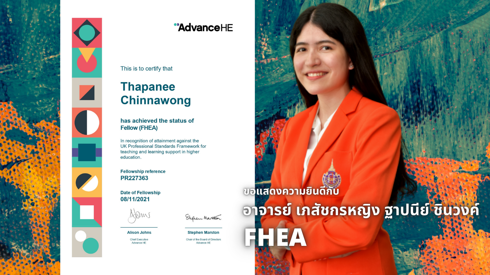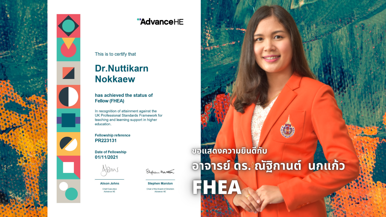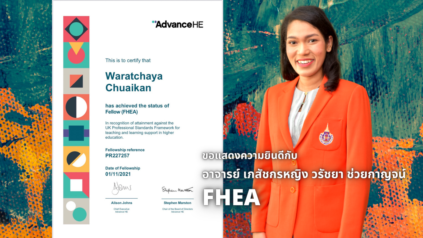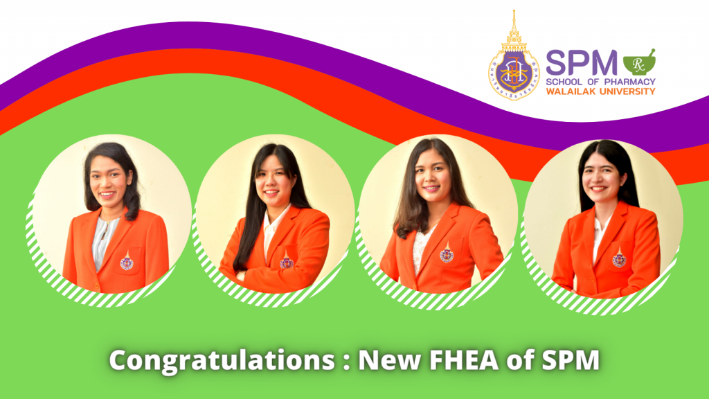As we know, Walailak University is the head of Thai University to improve the education system in Thailand. The UKPSF was introduced in the education system at Walailak University. Now 90% of the staff of WU were achieving HEA fellowship by HEA or the Higher Education Academy, UK. Today, the School of Pharmacy (SPM) has 4 new FHEA or Fellow in UKPSF. They are Miss Waratchaya Chuaikan, Miss Thamonwan Wanganutara, Dr.Nuttikarn Nokkaew, and Miss Thapanee Chinnawong