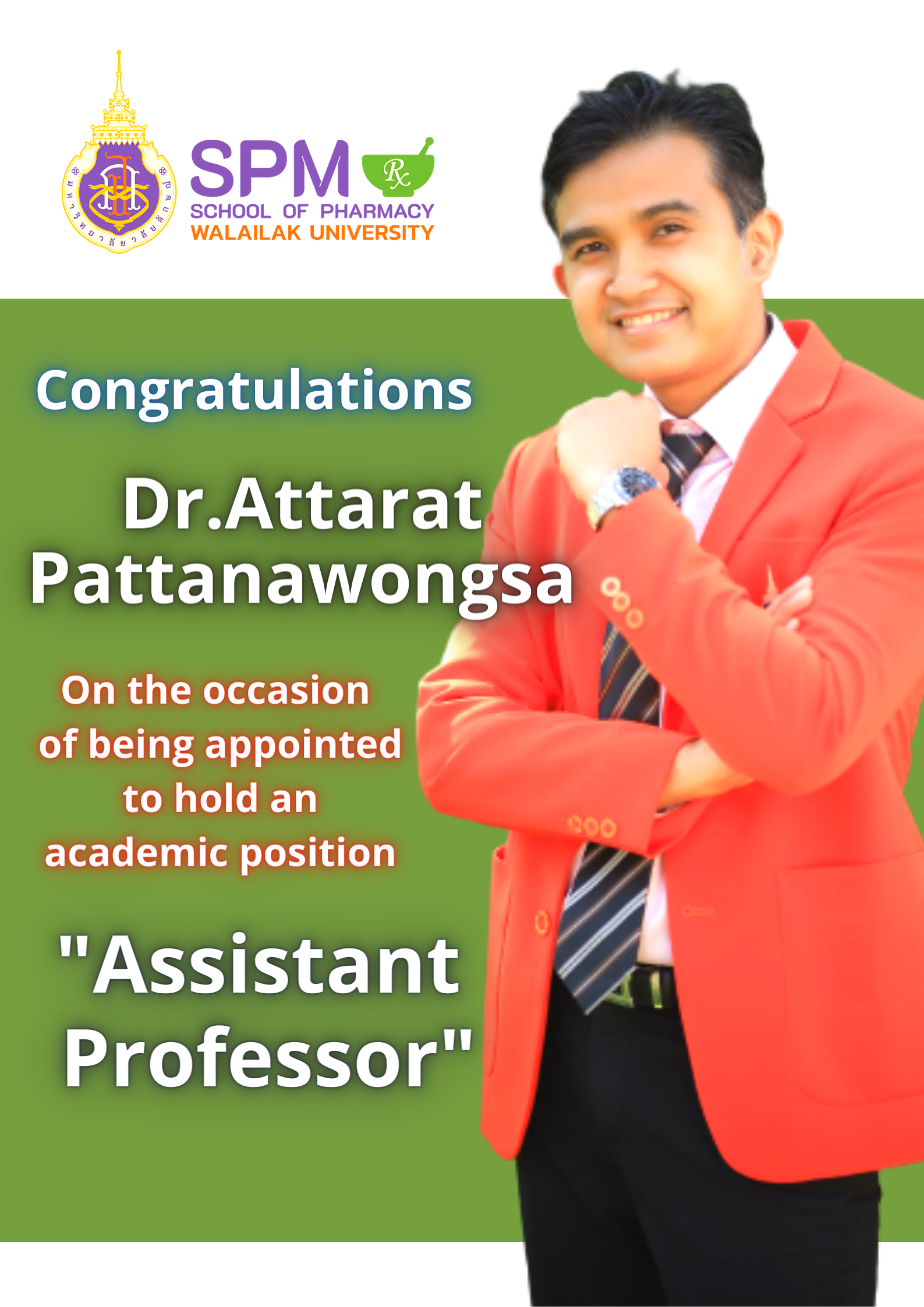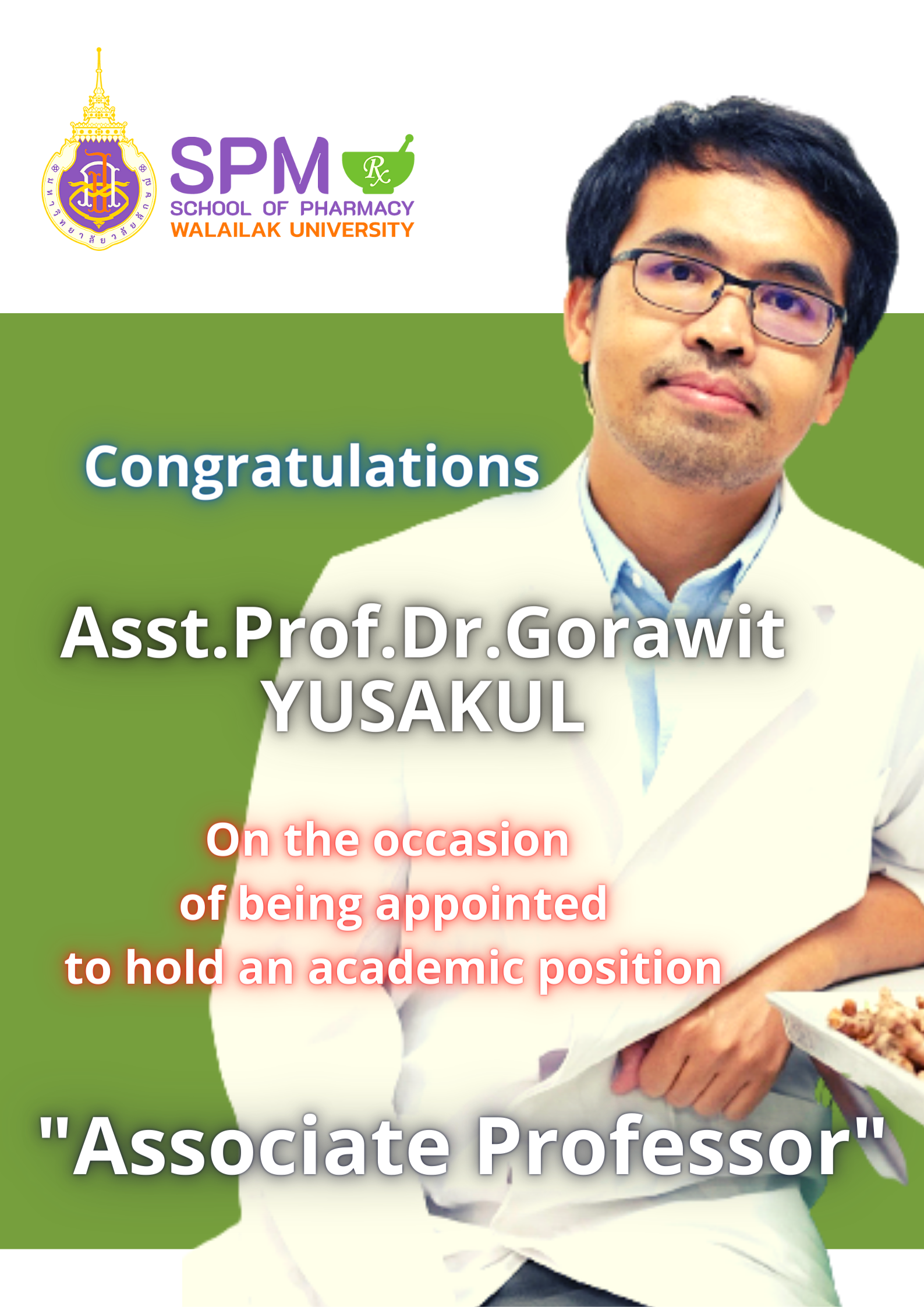 School of Pharmacy, Walailak Univesity had good news and would want to say congratulations to all of them on the occasion of being appointed to hold an academic position