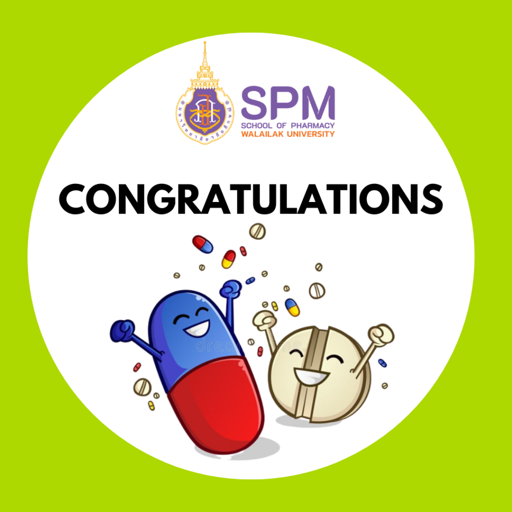 25th October 2022, Walailak University announced the staff who received excellent performance evaluation results for the fiscal year 2022 (90 points or more). In the School of Pharmacy, 15 staff received excellent performance evaluation results for the fiscal year 2022.