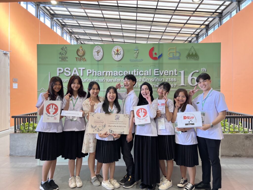 The School of Pharmacy, Walailak University, sent a team of pharmacy students to participate in the Pharmaceutical Skills Competition (Pharmaceutical Event 2023) on Sunday, February 18, 2024. The team from the School of Pharmacy, WU, led by Assistant Professor Kanruethai Sangkhno, achieved the following awards: