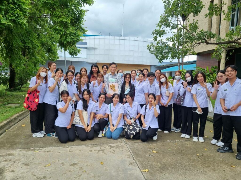On 12 – 13 September 2023, the School of Pharmacy, Walailak University, led by Assistant Professor Dr. Apichart Atipairin, Head of the Industrial Pharmacy Department. School of Pharmacy Walailak University with his team, including Associate Professor Dr. Somchai Sawadee, Assistant Professor Dr. Chaweewan Klongsiriwet, Assistant Professor Dr. Namfa Sermkaew, Dr. Nattapon Songnaka, Miss Chanakarn Sittisak, Miss Thamonwan Wangnutat and Mr.Phuwadon Muenraya led 124 pharmacy students on a special trip, “Industrial pharmacy trip” at T.O. Chemicals (1979) Co., Ltd., Giffarine Skyline Co., Ltd., Saowabha Institute of the Thai Red Cross Society, Rangsit Drug Manufacturing Factory, Government Pharmaceutical Organization, Biolab Company Limited, Inpack Pharma Company Limited, and Unison Company Limited, which allow all pharmacy students to experience and see with their own eyes the production process which is the actual production process. All of them saw the production process and modern equipment used in production. They also observed the production process of various medicines such as tablets, liquid dosage forms, suspensions, injectable drugs, etc. This project made it possible to see the actual production process of therapy from the raw material preparation process to finished products.