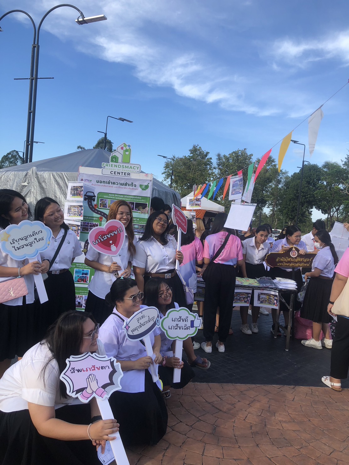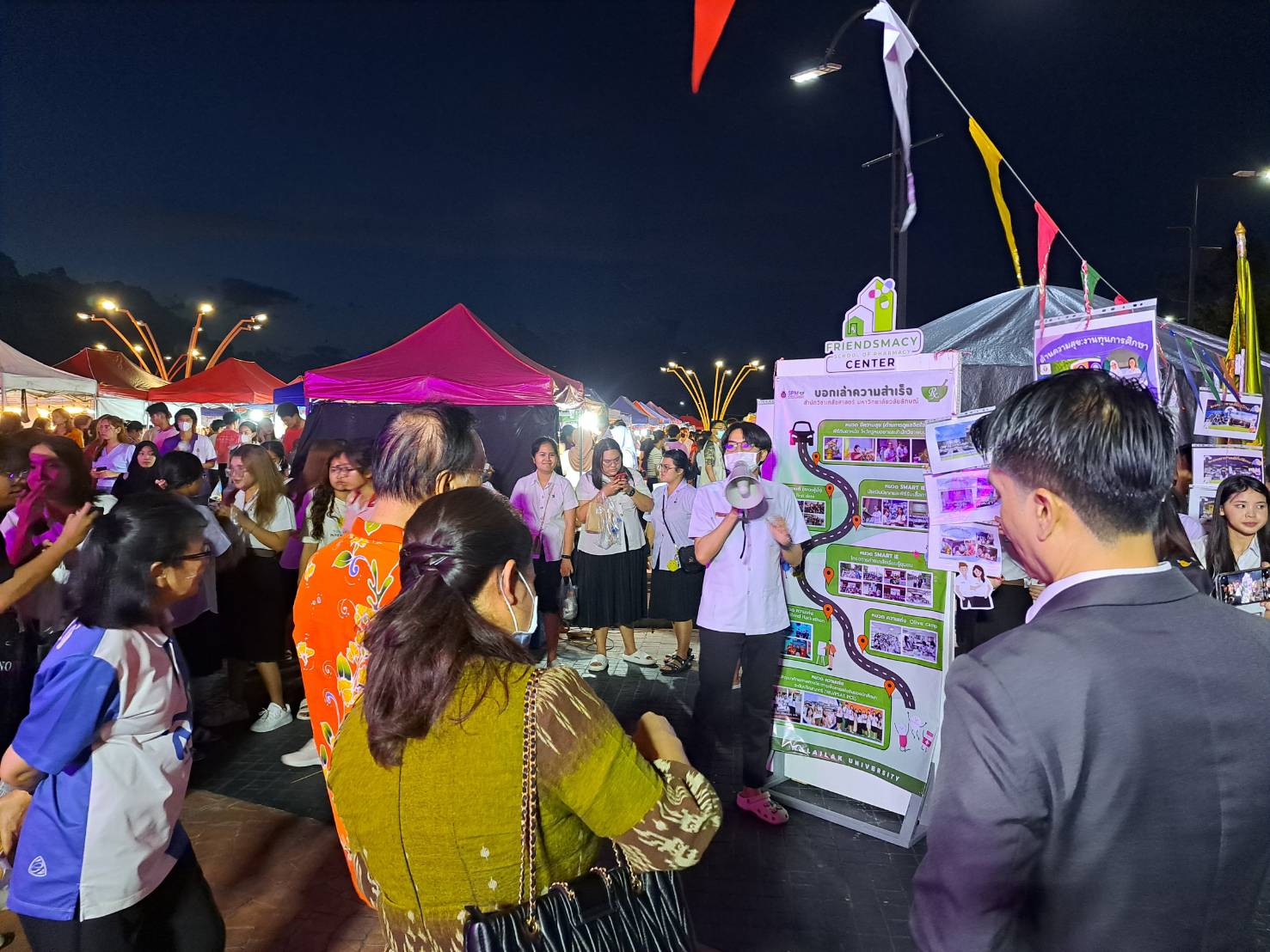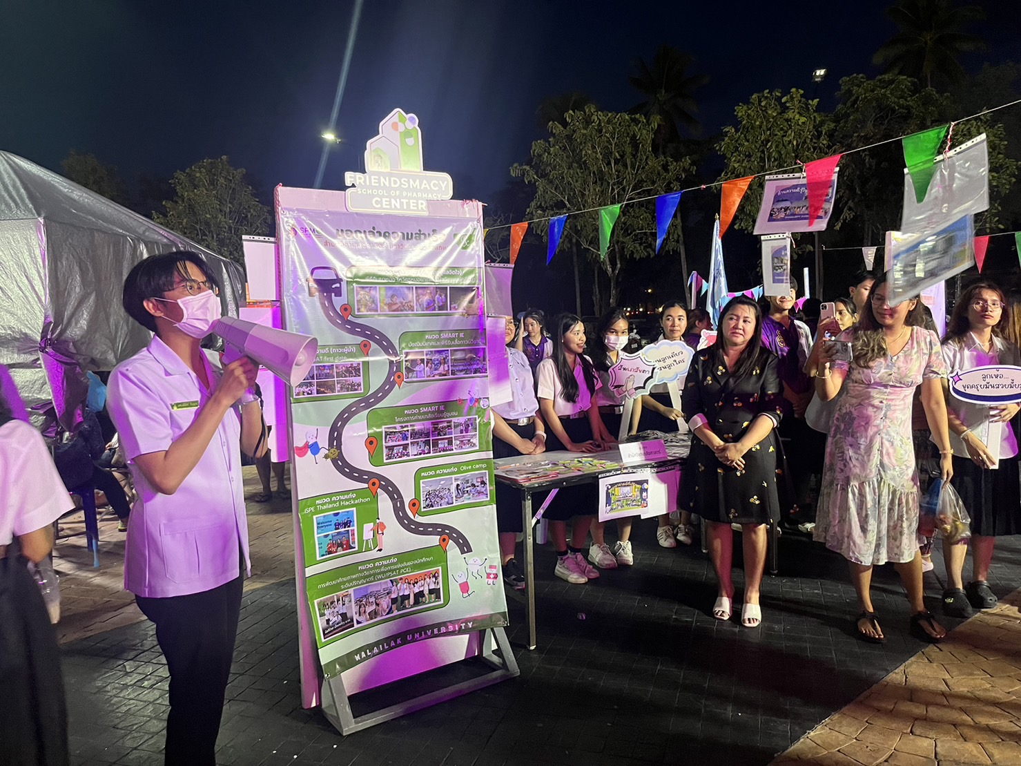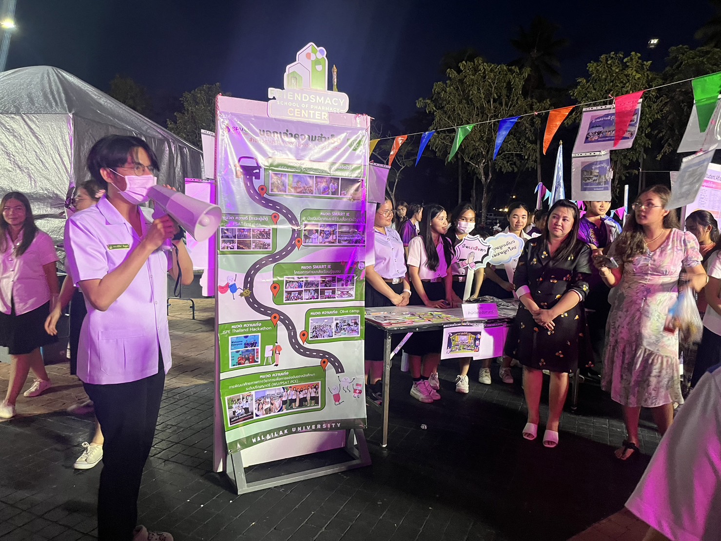 Dr. Juntratip Jomrit, Assistant Dean, School of Pharmacy, Walailak University, said on Thursday, 24, 2023, the School of Pharmacy, WU attended the event with Smile & Smart Center, WU to showcase the student care system of the School of Pharmacy (called “Friendmacy”). This event started at 4.30 pm in the area next to Bota-Market on the campus. Professor Dr. Sombat Thamrongthanyawong, President of Walailak University was honored to preside over the opening ceremony. Students, University staff, and others participated and were interested in this event. Our staff and pharmacy students showed the student care system and exchanged experiences among the Schools.