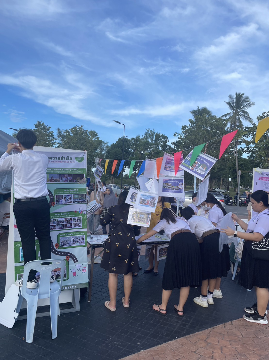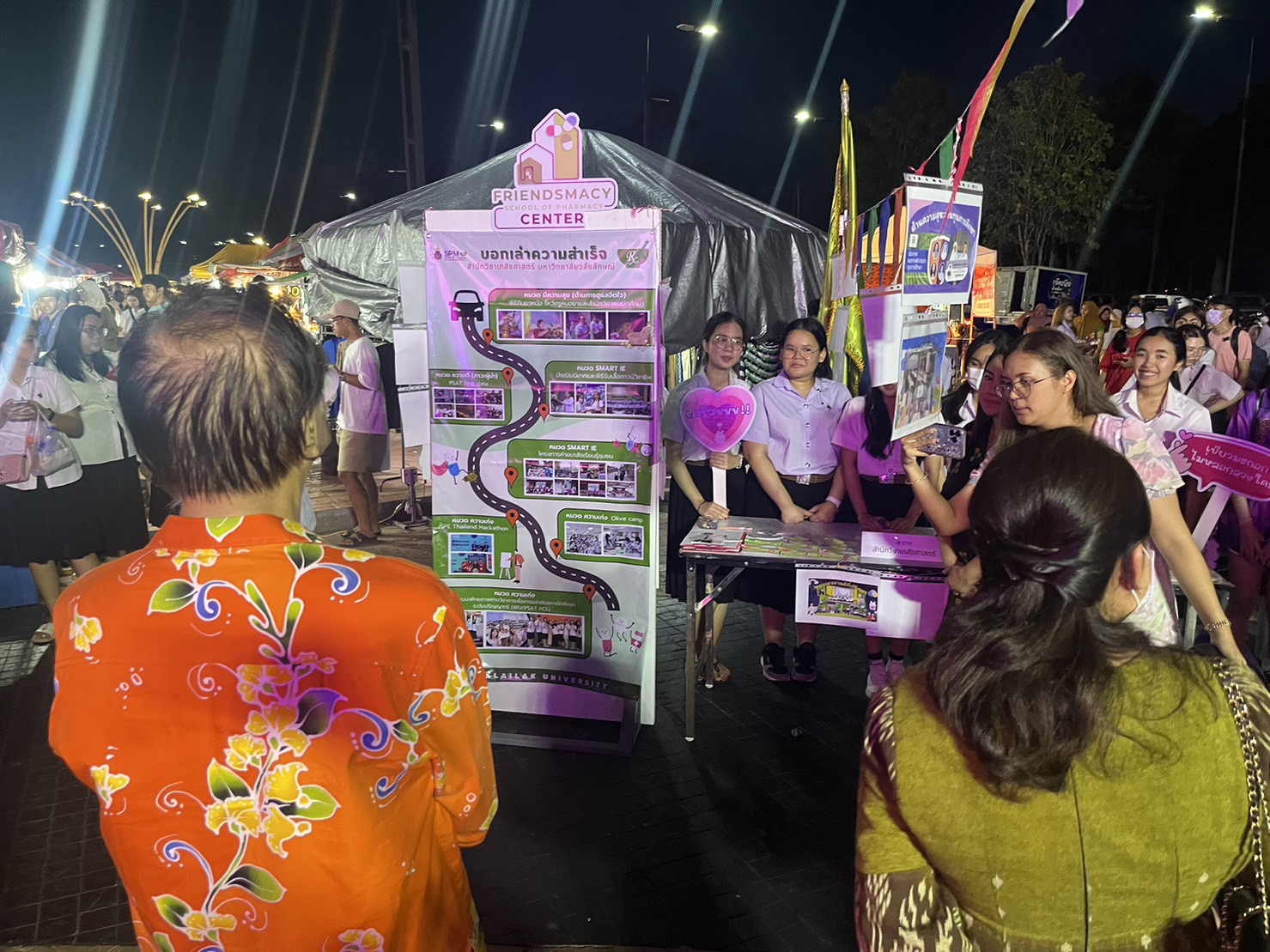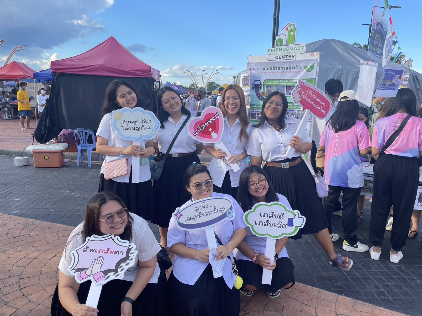 Dr. Juntratip Jomrit, Assistant Dean, School of Pharmacy, Walailak University, said on Thursday, 24, 2023, the School of Pharmacy, WU attended the event with Smile & Smart Center, WU to showcase the student care system of the School of Pharmacy (called “Friendmacy”). This event started at 4.30 pm in the area next to Bota-Market on the campus. Professor Dr. Sombat Thamrongthanyawong, President of Walailak University was honored to preside over the opening ceremony. Students, University staff, and others participated and were interested in this event. Our staff and pharmacy students showed the student care system and exchanged experiences among the Schools.