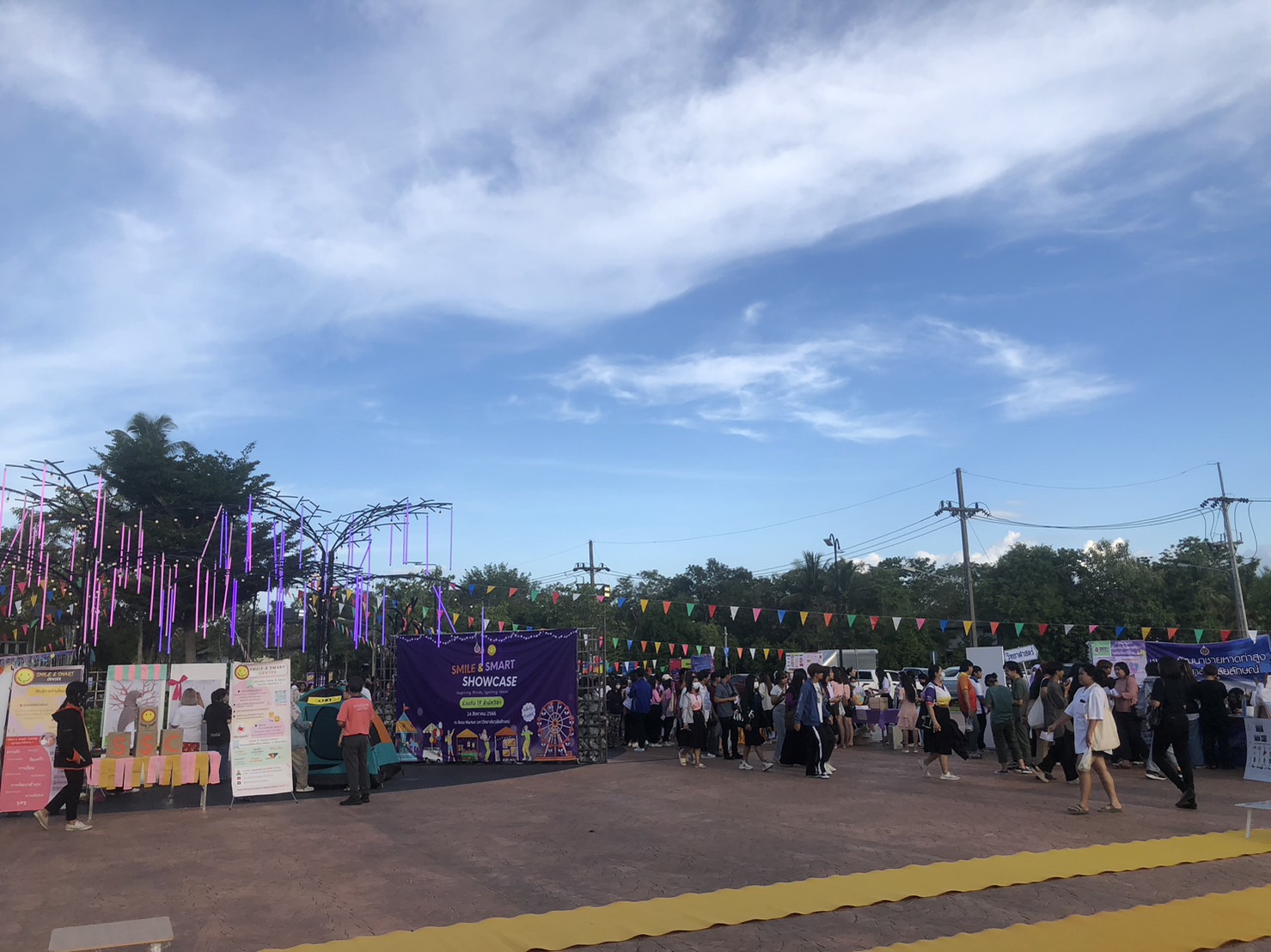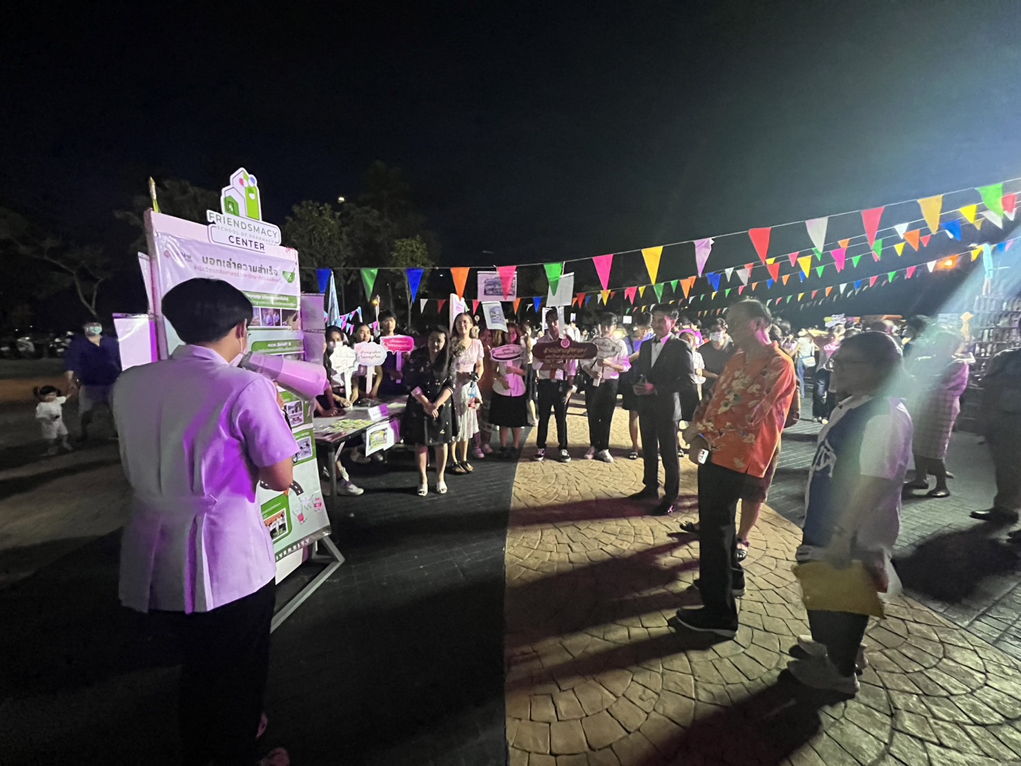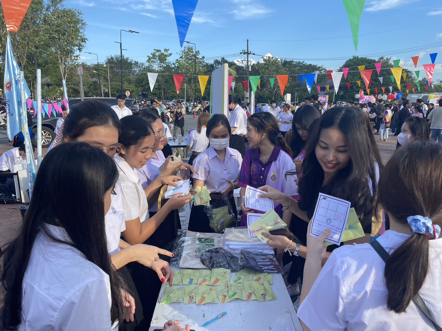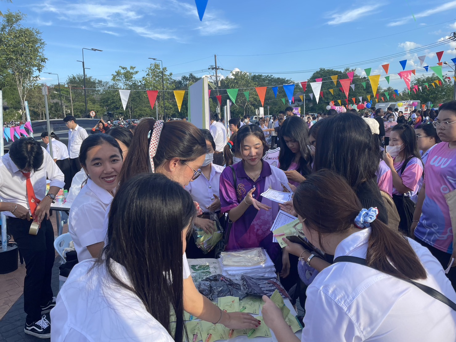 Dr. Juntratip Jomrit, Assistant Dean, School of Pharmacy, Walailak University, said on Thursday, 24, 2023, the School of Pharmacy, WU attended the event with Smile & Smart Center, WU to showcase the student care system of the School of Pharmacy (called “Friendmacy”). This event started at 4.30 pm in the area next to Bota-Market on the campus. Professor Dr. Sombat Thamrongthanyawong, President of Walailak University was honored to preside over the opening ceremony. Students, University staff, and others participated and were interested in this event. Our staff and pharmacy students showed the student care system and exchanged experiences among the Schools.