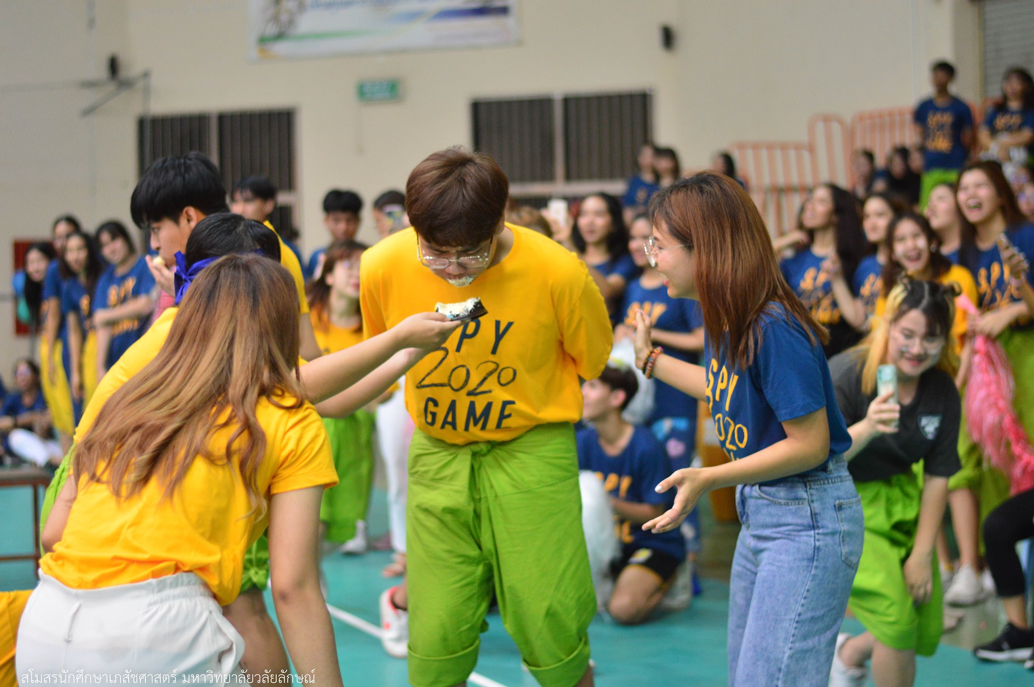 November 11, 2020: School of Pharmacy WU together with the Student Union organized SPY Game 2020 as an avenue for faculty members and students to meet with each other in a more friendly and cozy atmosphere for the semester 2/2020. A variety of fun sports competitions were arranged including futsal, “Superman” running race, tug of war, and speed-eating where staff and students were divided into Yellow and Blue teams with pretty T-shirts. This SPY Game 2020 aimed to encourage a good and closer relationship between staff and students as well as to promote good health and harmony. The Game was grandly opened by student parades from both Yellow and Blue teams followed by the Dean (Dr.Jiraporn Chingunpitak) kicking a soccer ball into the goal. According to the Dean’s speech, the school is willing to organize such fun activities for the school meeting in the next academic year.