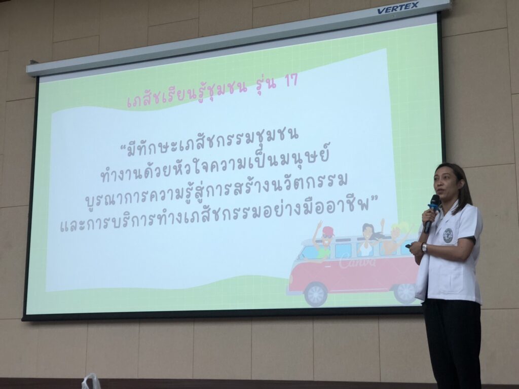 Dr. Thida Sotthiyothin, lecturer at the School of Pharmacy. Department of Pharmaceutical Care (Head of the project) said on Saturday, August 26, 2023, the School of Pharmacy organized community pharmacy learning activities for the 1st year pharmacy students who are the 17th pharmacy students of the School of Pharmacy Walailak University in the theme ” Senior introduce Junior” At the Room 5310, Academic Building 5, in the morning, our staff and senior pharmacy students gave the lecture and told the experiences about community pharmacy practice. In the afternoon, the senior pharmacy students took the 1st year pharmacy students to the communities around Walailak University. The show and share were done after returning to the campus.
