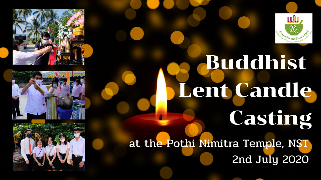 With the dedication of Dr. Chaweewan Klongsiriwet, head of pharmaceutical industry division, a donation campaign to cast the lent candles successfully received university-wide interests and could raise donation money of 29,384 THB in total. After deducting all expenses, 21,999 THB has donated to the Pothi Nimitra Temple. We are deeply thankful for everyone who donated their money or contributed fully or partly to the activity and wishes them all the best!