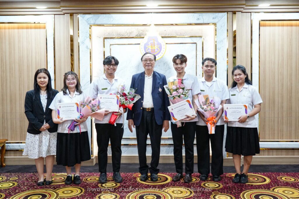 [Nakhon Si Thammarat, Thailand] – Professor Dr. Sombat Thamrongthanyawong, Acting President of Walailak University, recently presented bouquets of congratulations to six outstanding sixth-year students from the School of Pharmacy. These students have brought immense pride to the university by winning prestigious awards at both national and international levels, reflecting the high standards of pharmaceutical education at Walailak University.