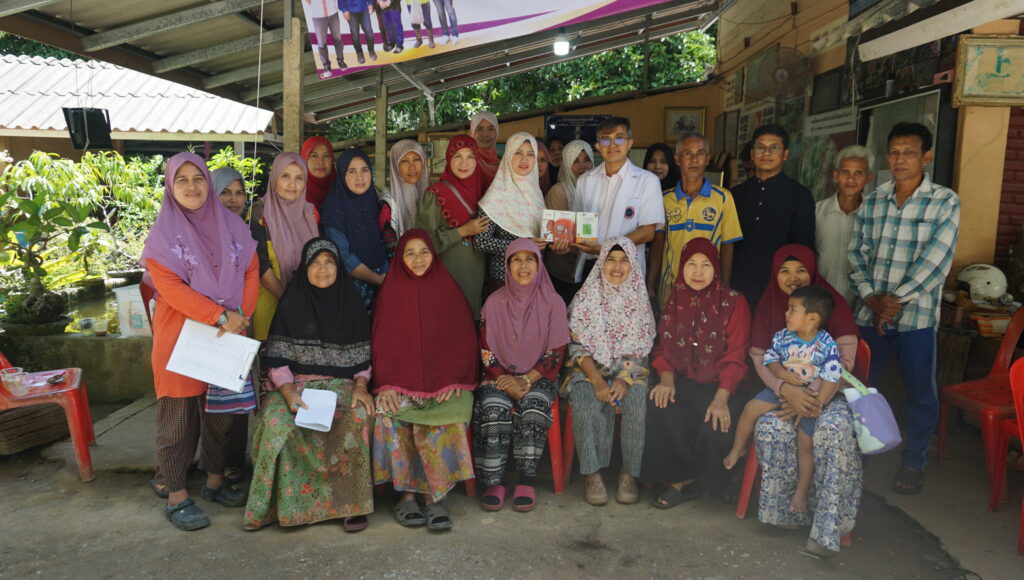On August 27, 2025, at Ban Khao Wang Community, Ron Phibun District, Nakhon Si Thammarat Province, a research team from Walailak University, led by Asst. Prof. Dr. Attarat Pattanawongsa, Principal Investigator, together with co-researchers Asst. Prof. Dr. Bussabun Sukkan, Asst. Prof. Dr. Tanwa Binlateh, Assoc. Prof. Dr. Monthon Lertkanawanichkul, and Asst. Prof. Dr. Suebtarakul Wisetsombat organized a community outreach activity to disseminate knowledge on medicinal plants and health to more than 50 participants, including community enterprise members and village health volunteers (VHVs).