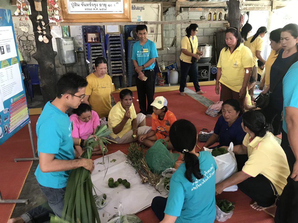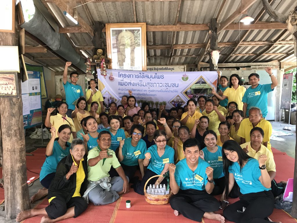 สำนักวิชาเภสัชศาสตร์ มหาวิทยาลัยวลัยลักษณ์ ร่วมกับ สำนักงานสาธารณสุขอำเภอลานสกา โรงพยาบาลลานสกา โรงพยาบาลส่งเสริมสุขภาพตำบลและเทศบาลอำเภอลานสกา แกนนำด้านสุขภาพ หมอพื้นบ้าน และประชาชนในพื้นที่อำเภอลานสกา จัดโครงการ “การใช้สมุนไพรเพื่อส่งเสริมสุขภาวะชุมชน” เพื่อส่งเสริมให้ประชาชนในชุมชนนำสมุนไพรในท้องถิ่นมาใช้เพื่อป้องกันตนเองและคนในครอบครัวจากการถูกยุงกัด เพื่อช่วยลดอัตราการระบาดของโรคที่มียุงเป็นพาหนะ โดยเฉพาะโรคไข้เลือดออก ข้อมูลจากสำนักงานโรคติดต่อนำโดยแมลง กรมควบคุมโรค สรุปอัตราป่วยสะสมของโรคไข้เลือดออกตั้งแต่วันที่ 1 มกราคม – 18 กันยายน 2561 พบว่า จังหวัดนครศรีธรรมราช มีอัตราป่วยสะสมสูงสุดอยู่ลำดับที่ 6 ของประเทศไทย จากเหตุผลดังกล่าว จึงเป็นที่มาของการดำเนินโครงการ“การใช้สมุนไพรเพื่อส่งเสริมสุขภาวะชุมชน” ในพื้นที่อำเภอลานสกา โดยมุ้งเน้นไปที่การส่งเสริมให้มีการใช้สมุนไพรเพื่อไล่หรือป้องกันยุงกัดในรูปแบบต่างๆ โดยวัตถุประสงค์ของโครงการประกอบด้วย 1) เพื่อให้ประชาชนมีความรู้เรื่องไข้เลือดออกและสมุนไพรไล่ยุง 2) เพื่อรณรงค์ให้มีการปลูกพืชสมุนไพรไล่ยุงในพื้นที่อำเภอลานสกา และ 3) เพื่อพัฒนาผลิตภัณฑ์เพื่อใช้ป้องกันยุง โดยมุ่งเน้นการมีส่วนร่วมของชุมชนเป็นหลัก โดยมีคณาจารย์สำนักวิชาเภสัชศาสตร์ ได้แก่ ดร.ฉวีวรรณ คล่องศิริเวช รศ.ถนอมจิต สุภาวิตา ผศ.ดร.สุปรียา ยืนยงสวัสดิ์ และดร.อรรถรัตน์ พัฒนวงศา เป็นวิทยากรหลัก และบุคลากรจากสำนักวิชาเภสัชศาสตร์ ได้แก่ คุณสุนิสา สังข์ช่วย และ คุณสันติ บุหลัง เป็นคณะทำงานหลักในการดำเนินโครงการและประสานความร่วมมืออย่างเข้มแข็งกับบุคลากรในพื้นที่อำเภอลานสกา